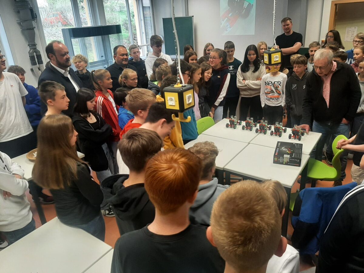 Sportlich und naturwissenschaftlich zugleich ging es im Chemielabor zu, wo die siebten Klassen im Rahmen der ÜBZO an wasserstoffbetriebenen Rennautos tüftelten, die dann auch gleich ausprobiert wurden. Und schließlich kündigte Verbindungslehrer Bastian Lobinger an, dass demnächst auf Schülerwunsch hin ein Sprudelwasserspender in der Aula in Betrieb genommen wird und hierzu eine Bestellaktion von smarten personalisierten Wasserflaschen mit Schullogo durchgeführt wird. Es bleibt spannend, welche Themen als Nächstes am Experimentiertisch der Lobkos landen werden.