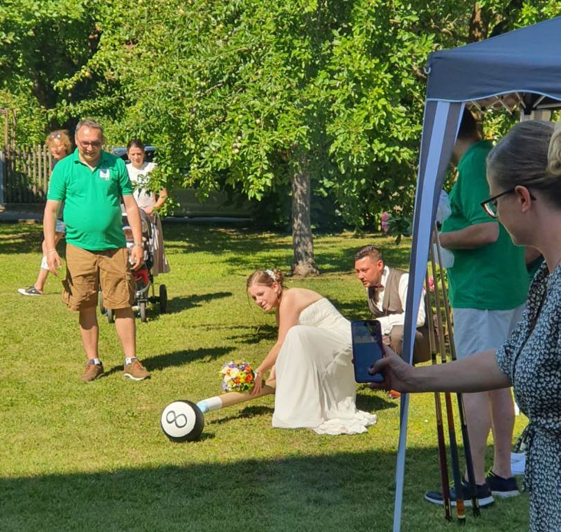 Auch ein Riesen-Billard, den der Poolbillard-Verein in Eschenbach für Mitglied Paolo und seine frisch gebackene Ehefrau vorbereitet hatten, war ein absoluter Hingucker. Auch hier durfte das Brautpaar ihr Zusammenspiel unter Beweis stellen. Es war eine entspannte Hochzeit und “einfach perfekt”, zieht die glückliche Braut ihr Fazit. Alles in allem also perfekte Voraussetzungen für den Start ins Eheleben.