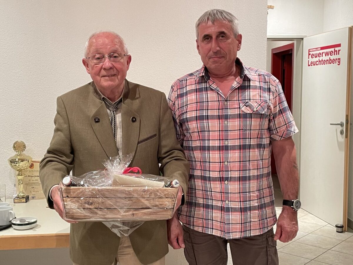 Er gratulierte ihm nachträglich zum 85. Geburtstag, den er leider pandemiebedingt vor zwei Jahren nicht feiern konnte. Da jetzt sein 87. fast auf den Tag genau ansteht, nahmen die Kameraden die Gelegenheit wahr, um jetzt bei Jahreshauptversammlung der Kameradschaft gebührend ihren Ehrenvorsitzenden zu feiern.