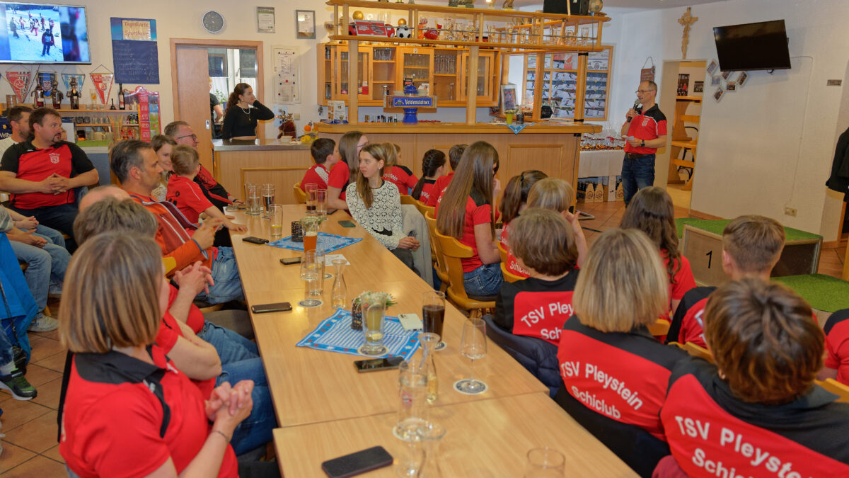 Über 100 Gäste, darunter Bürgermeister Rainer Rewitzer, TSV Pleystein – Präsident Sepp Windirsch, Ski – Abteilungsleiter Christian Enslein und zahlreiche Ehrengäste, verwandelten das Sportheim in eine Hütte voller ausgelassener Stimmung.