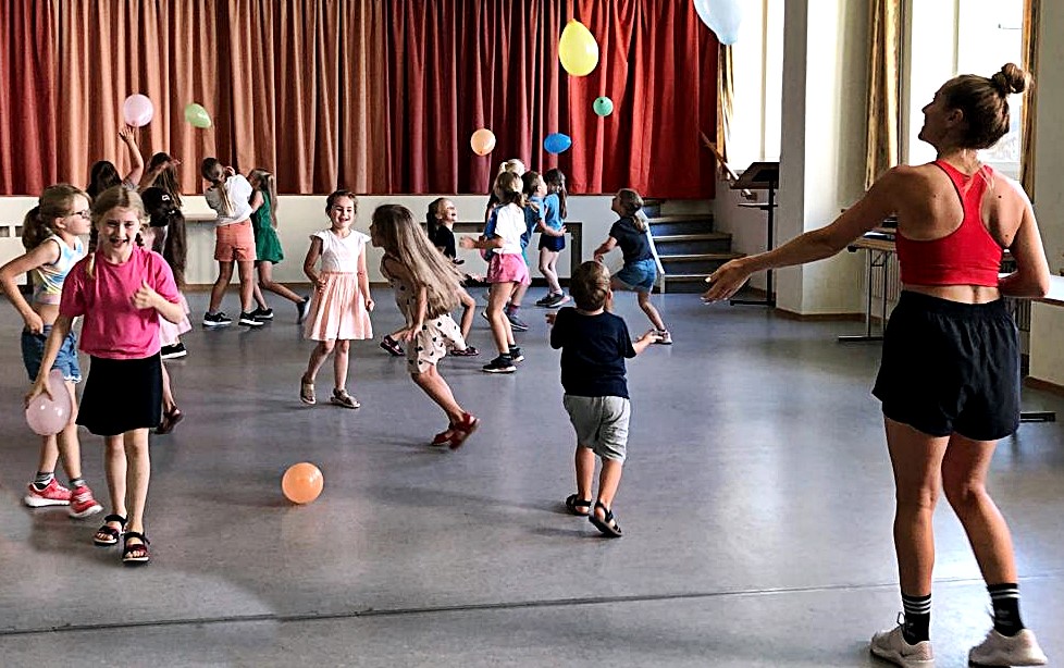 Neben den Tanzübungen standen auch Tanzspiele auf dem Programm, die bei den teilnehmenden Kindern für viel Freude sorgten. Besonders der Luftballontanz stellte eine willkommene Abwechslung dar und förderte Geschicklichkeit und Spielfreude. Für Erfrischung zwischen den Tanzeinheiten wurde mit Getränken und Brezeln gesorgt. Ein besonderes Highlight war die Tanzdarbietung von Alice Lenk, der Tochter von Ina Lenk, die mit ihrer anspruchsvollen Performance die Kinder begeisterte und applaudiert wurde.