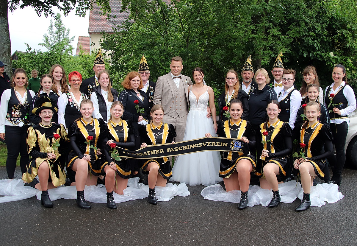 Beim Austreten aus der Kirche standen viele Vereine und Arbeitskollegen Spalier. So natürlich auch Philipps Feuerwehr, die Arbeitskollegen oder der Pressather Faschingsverein. Nach ein paar Aufgaben und Hindernissen gab es zuerst einen kleinen Umtrunk auf der Wiese vor der Klosterkirche, ehe es in den Feststadl am Haselhof mit vielen Verwandten und Freunden (etwa 170 Gäste) ging.