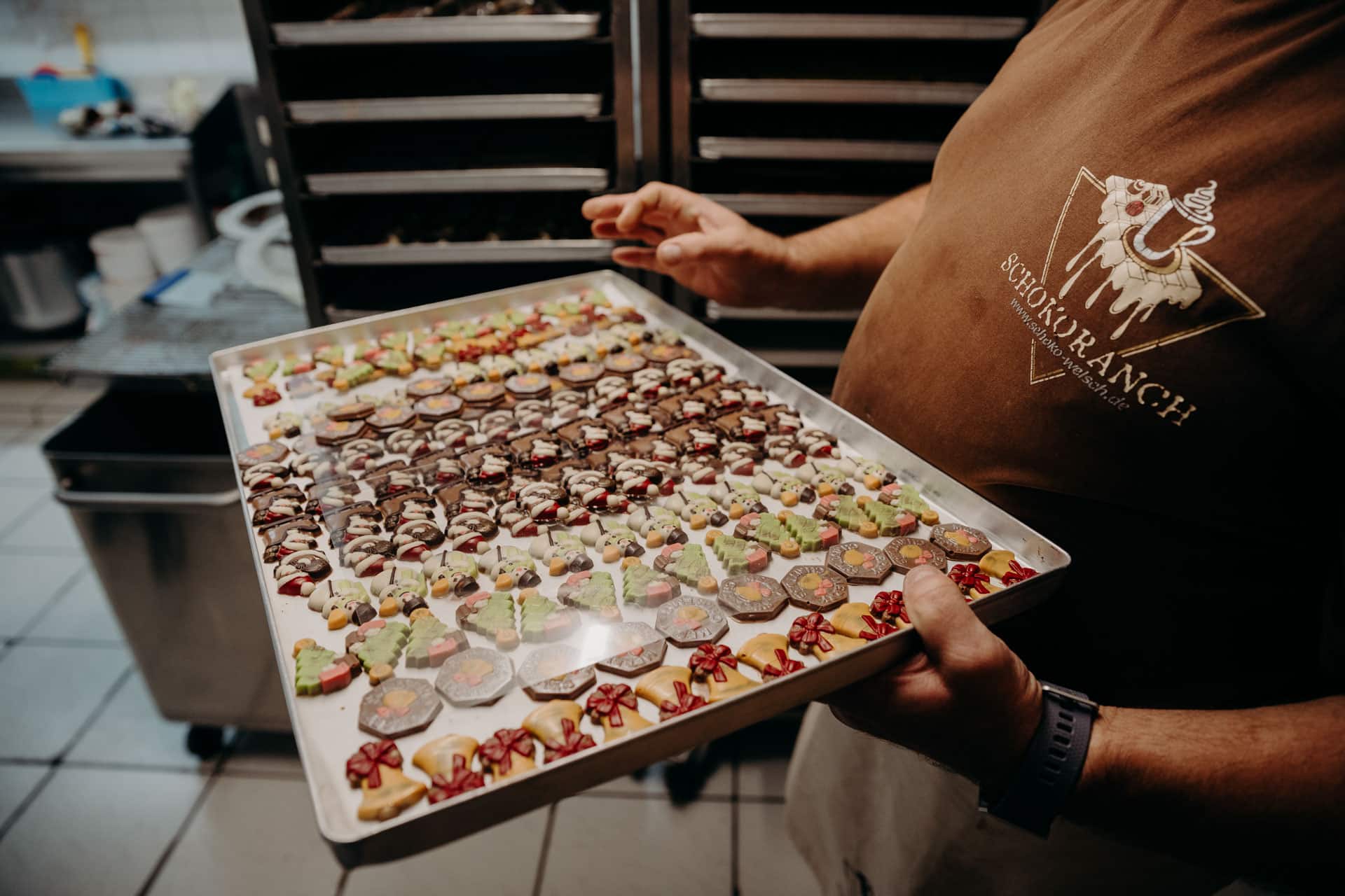 Für Firmen ist es eine schöne Art, ihren Kunden mit einer feinen Schokolade oder Praline Danke zu sagen. Dafür bietet die Schokoranch auch an, die Schokotafeln mit dem Firmenlogo zu versehen. Regionalität liegt dem Ehepaar sehr am Herzen. Soweit es die Zutaten zulassen, wird bei der Herstellung auf regionale Produkte wie Honig, Liköre und Gewürze zurückgegriffen.