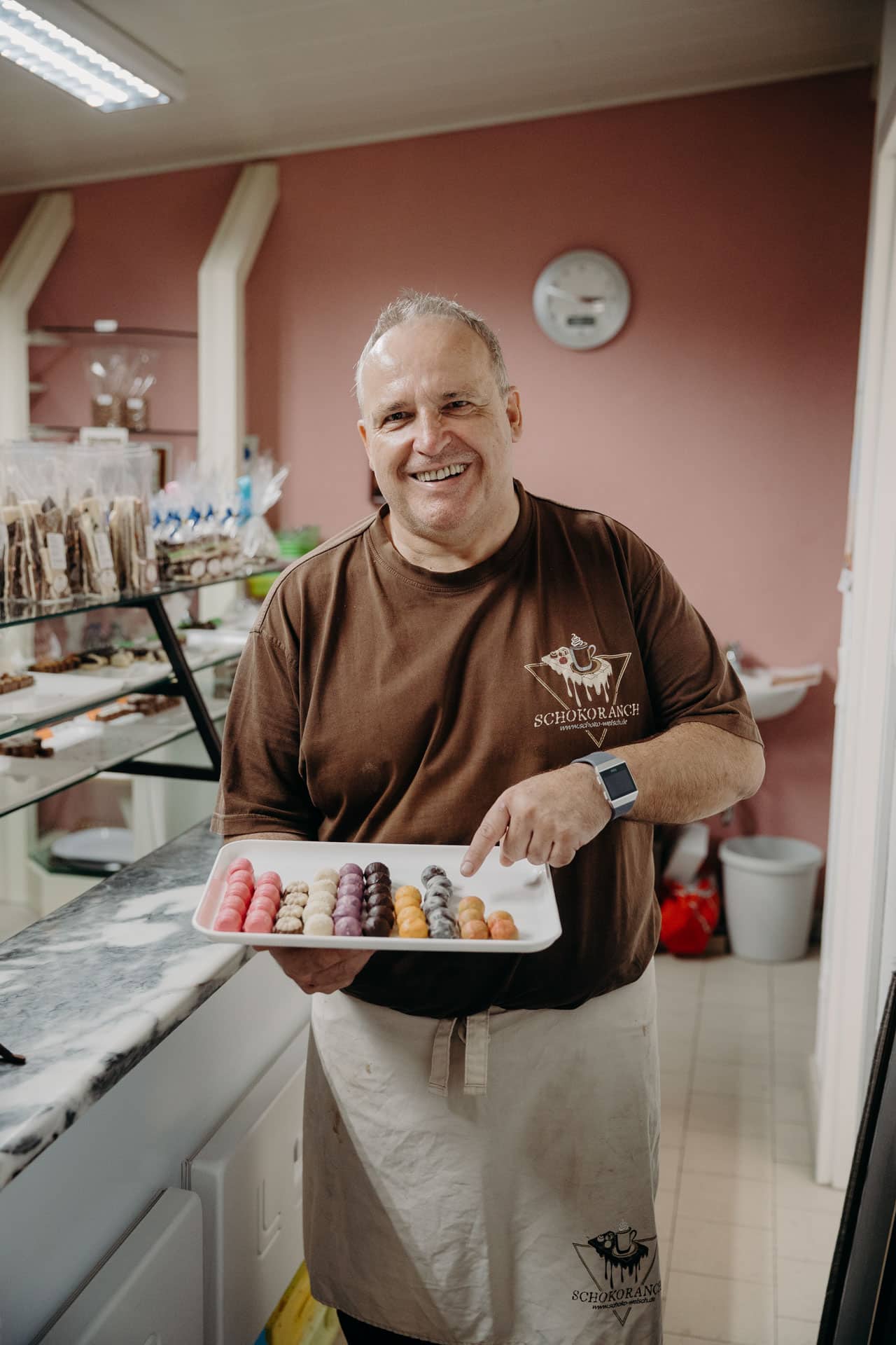 Selbst bezeichnet er sich als Schokoladenmaler und gibt zu, dass die Herstellung anfangs gar nicht so einfach war. „Ich musste viel Lehrgeld bezahlen, habe Schulungen besucht, mich in Bücher eingelesen, auf Messen von anderen Backmeistern gelernt und schlussendlich selbst viel experimentiert.