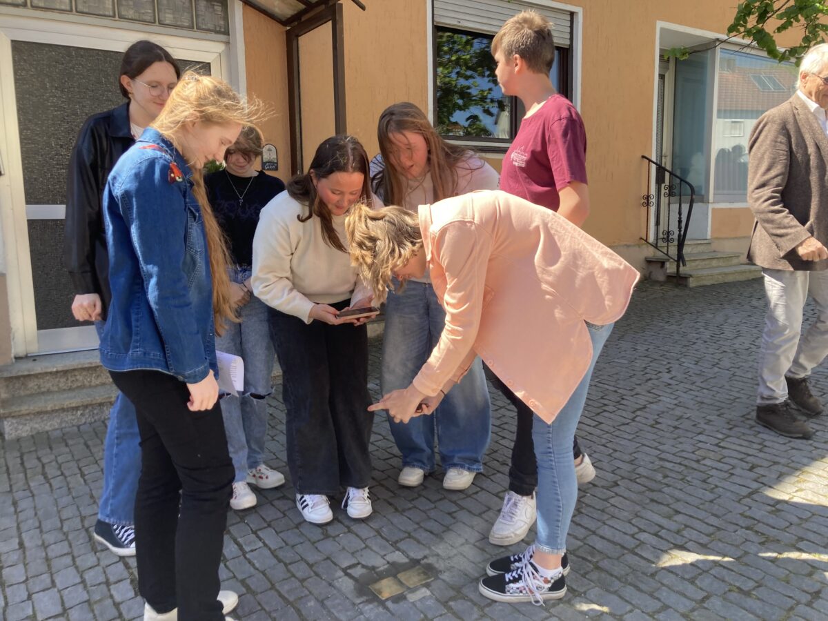 Anna Reil, Lina Schmal, Sophia Kleber, Anton Bock, Franziska Pschirrer, Sophie Hörig und Magdalena Gissibl waren dabei, als Katja Demnig aus Berlin die Steine verlegte. Sie vertrat ihren Mann, Künstler Gunter Demnig, der die Aktion weltweit 1992 gestartet hatte. Die Schüler wurden von Realschuldirektor Kilian Graber und ihrer Lehrerin Doris Thammer begleitet.