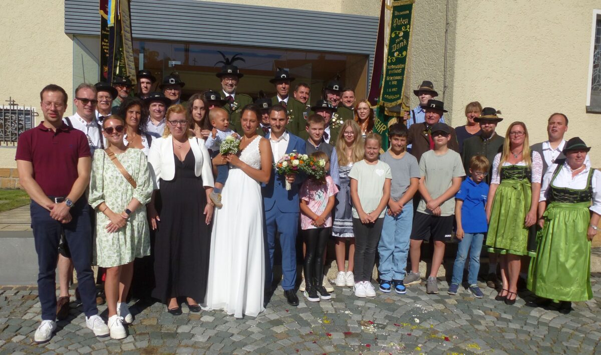 Pater Prince wünschte Tim und Ramona die Kraft und den Segen Gottes im Überfluss und ermutigte: „Achtet auf das Wertvolle im anderen, schaut einander mit den Augen der Liebe, sucht auch stets die Verbindung zu Gott.“ Für ein festliches musikalisches Ambiente sorgten Solotrompeter Hans Rettinger und Brautonkel Dieter Ludwig an der Orgel. Auch die Trauzeugen stellten die Hubertus-Schützen mit Manuel Knötig und Melanie Hartmann.