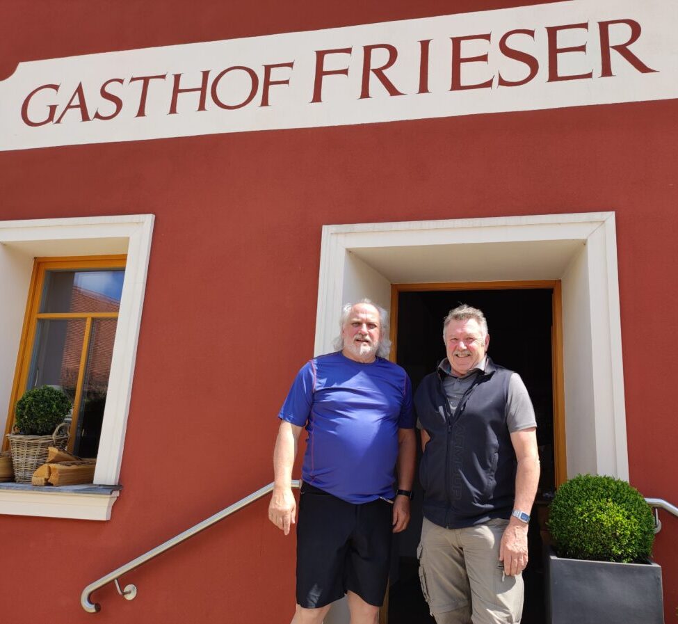 Seit 2023 gibt es auch eine Neuerung. Aufgrund des Alters und einigen körperlich Beschwerden ist man auf das E-Bike umgestiegen. Mit dem Fahrrad macht es genauso viel Spaß, es erleichtert den Weg einfach ungemein. Am Jubiläumsvatertag war es eigentlich wie immer, ohne große Absprache trafen sich die beiden und auf ging es nach Kohlberg. Die Waldwege bestimmen nicht mehr die Route, man nutzt überwiegend die Radwege. Beim „Frieser“ genoss man das traditionelle „Herrenschnitzel“ zum Bier.