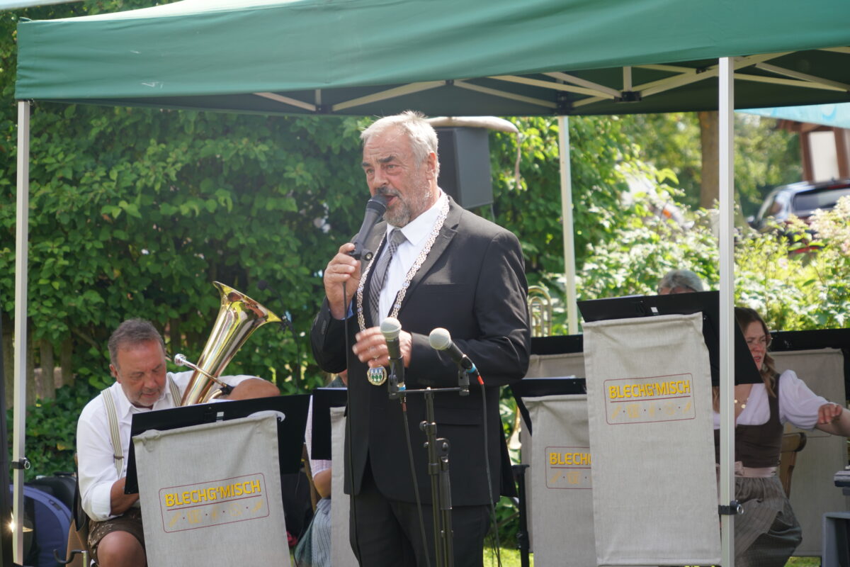 Bewunderung fand natürlich das neue Dorfheisl mit den Spielanlagen gerade für die Kleinsten, den richtigen Ton fanden die „internationale“ Blasmusikgruppe „Waldthurner Blechg’misch“, in der auch Musikanten aus Eslarn und Oberviechtach mit Hans-Peter Reil an der Spitze aufspielten. Die Musikgruppe brachten unterhaltsame Musik mit Gesang in die dörfliche Geburtstagsfeier, die seinesgleichen sucht.