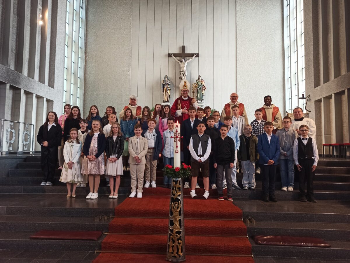 Er erklärte ihnen, dass der Heilige Geist in ihnen Begeisterung erwecken soll, die zu vergleichen sei mit der Begeisterung für einen Fußballverein. Der Weihbischof bat die Kinder trotz der heute schwierigen Zeit der Begeisterung zu Gott treu zu bleiben und den Glauben nie zu verlieren.