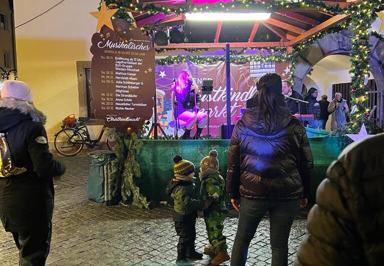 In Weiden und der Umgebung ist die Party-Band „Highline“ für Kirwas und Volksfeste sehr gefragt. Eins ist sicher: Wo die Band auftritt, herrscht Feierlaune. Zwei Mitglieder der Band zeigten jedoch eine andere Seite von sich. Julia Schönberger und Norman Schelter gaben als Duo ein Konzert auf dem Christkindlmarkt in Weiden. Neben zahlreichen gefühlvollen Liedern, wie „Let me go home“ von Michael Bublé, sangen sie auch Weihnachtsklassiker. Die Besucher und Besucherinnen des Marktes zeigten sich jedenfalls begeistert.