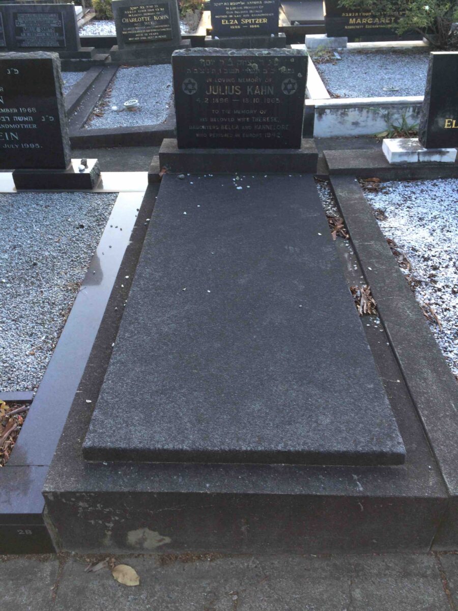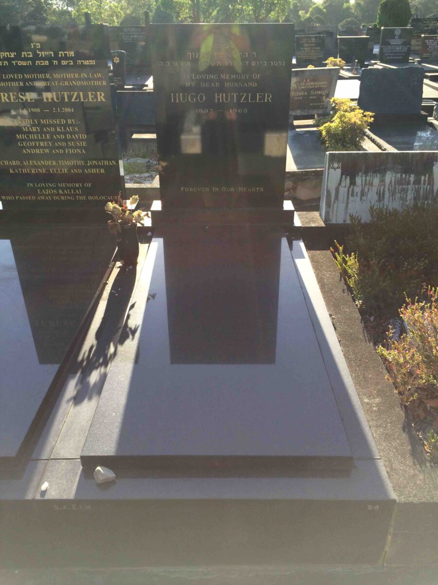Julius Kahn stirbt als Erster der beiden Schwager. Auf seinem Grabstein im Macquarie Park in Sydney steht gemeißelt: “In Erinnerung an seine geliebte Ehefrau Therese, die Töchter Bella und Hannelore, die 1942 in Europa umkamen.” Auf dem gleichen riesigen Friedhof wird 1968 auch Hugo Hutzler (71) beigesetzt – und zwar ganz nah bei Julius. Nur eine Grabreihe trennt die beiden. Sie ruhen in Sichtweite.