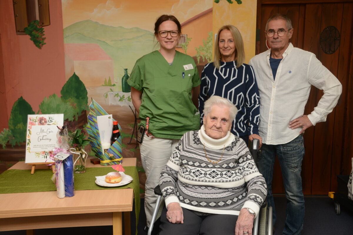 Seit Januar 2020 lebt Katharina Eismann in der Pflegeeinrichtung „Wohnen am Kreuzberg“. Deren Mitarbeiter brachten am Sonntagvormittag der Jubilarin und einer anderen Bewohnerin, die gleichfalls Geburtstag hatte, ein Ständchen. Für die Familie gratulierten Tochter Sonja gemeinsam mit Ehemann Raimund Lechner der Mutter und Schwiegermutter.