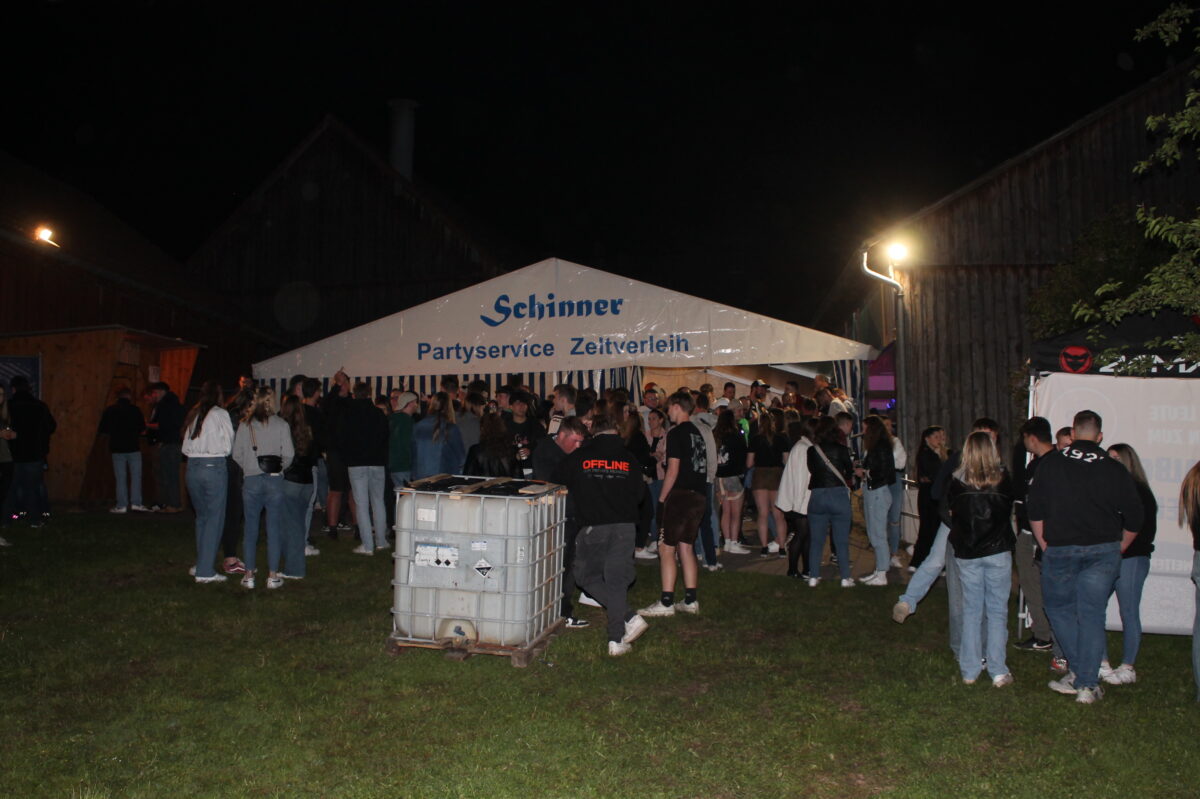Trotz einer Konkurrenzveranstaltung in Frankenberg bei Vorbach waren es am Ende 550 Besucher, für die eine 55-köpfige Mannschaft von neun Uhr abends bis vier Uhr morgens in Halle und Festzelt unermüdlich auf den Beinen war – verdienter Lohn für eine viermonatige “heiße Planungsphase” und fünf Tage Aufbauarbeit. Über so viel tanzbegeistertes Publikum freuten sich auch die DJs “James” und “Feier&Eis”.