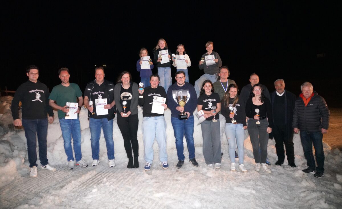 Die weiteren Plätze belegten Simon Kleber, Anton Neuber, Tobias Neuber, Philipp Heldwein, Anton Neuber sen. und Hubert Kleber. Bei der Siegerehrung durch Katrin Kleber und Tobias Neuber dankten die beiden Hüttenfreunde – Vorsitzenden ausdrücklich den beiden Zeitnehmern Anton Schön und Robert Franz. Das Duo bewies auch an diesem Abend einmal mehr ihre Professionalität, indem sie jede unerwartete Wendung mit Ruhe und Präzision meisterten – selbst in Momenten, in denen die Technik unvorhergesehen herausgefordert wurde.