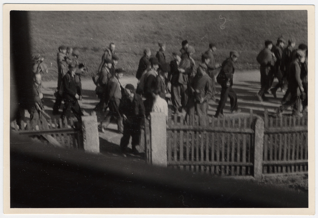 Der Häftlings-Fußmarsch wird von SS-Schergen begleitet. Alles Schwache wird unterwegs getötet. Leichen säumen den Todesmarsch oder “Blutweg”, wie ihn Franzosen nennen. Um die 150 Tote gibt es im Landkreis Tirschenreuth.