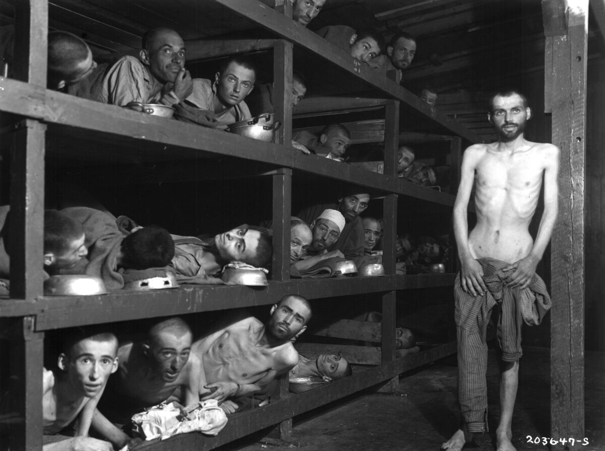 Die Räumung des Konzentrationslager Buchenwald begann am 7. April 1945 mit den einzigen beiden Fußtransporten zum etwa 250 Kilometer entfernten Konzentrationslager Flossenbürg. Historikerin Greiser zitiert einen Fußmarsch-Überlebenden über seine Verpflegung: “Die ersten drei Tage nach dem Abgang für 10 Mann 1 Wecken Brot und 1 Paket Margarine, keine Wurst, kein Fleisch. Die nächsten 3 oder 4 Tage – nichts zum Essen. Sonst am Abend 3 bis 4 Pellkartoffeln. Und während eines Nachtmarsches – nichts.”