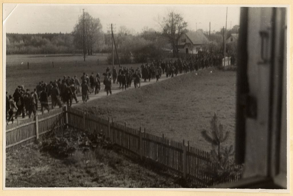 Die Gefangenen machten einen total verhungerten und vollständig erschöpften Eindruck. Viele waren nur noch Haut und Knochen. Mir ist nur ein Mann aufgefallen, der noch gut ernährt aussah. Keiner der Gefangenen hatte ein Eßgeschirr, nur etwa 20 oder 30 Mann hatten leere Konservenbüchsen oder Becher in der Hand. Sie bettelten die Bevölkerung um Brot und Wasser an. Einige bückten sich; mir gegenüber, vor einem Bauernhof und sammelten einige Getreidekörner auf. Sie wurden jedoch von der Begleitmannschaft sofort mit Knüppelschlägen weitergetrieben. Dabei brach ein Gefangener vollständig zusammen. Weitere Schläge mit einer Lederpeitsche in Nacken und Gesicht halfen nichts. Das Blut rann ihm aus Stirn und Ohren. Er wurde von einem SS-Mann an einem Gehöftzaun sitzen gelassen.