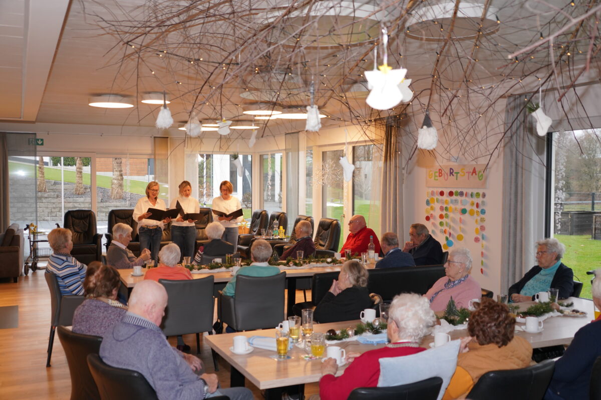 Bei Liedern wie „Nun es nahen die Stunden“, „Sind die Lichter angezündet“ oder „Maria durch ein Dornwald ging“ konnte man ein leises Mitsummen der Senioren hören. Die drei Sängerinnen Andrea Götz, Steffi Daubenmerkl und Doris Völkl entführten die Zuhörer in die stillste Zeit des Jahres. Texte über den Zauber der vier Kerzen oder darüber, wo Bethlehem liegt, ergänzten den Gesang.