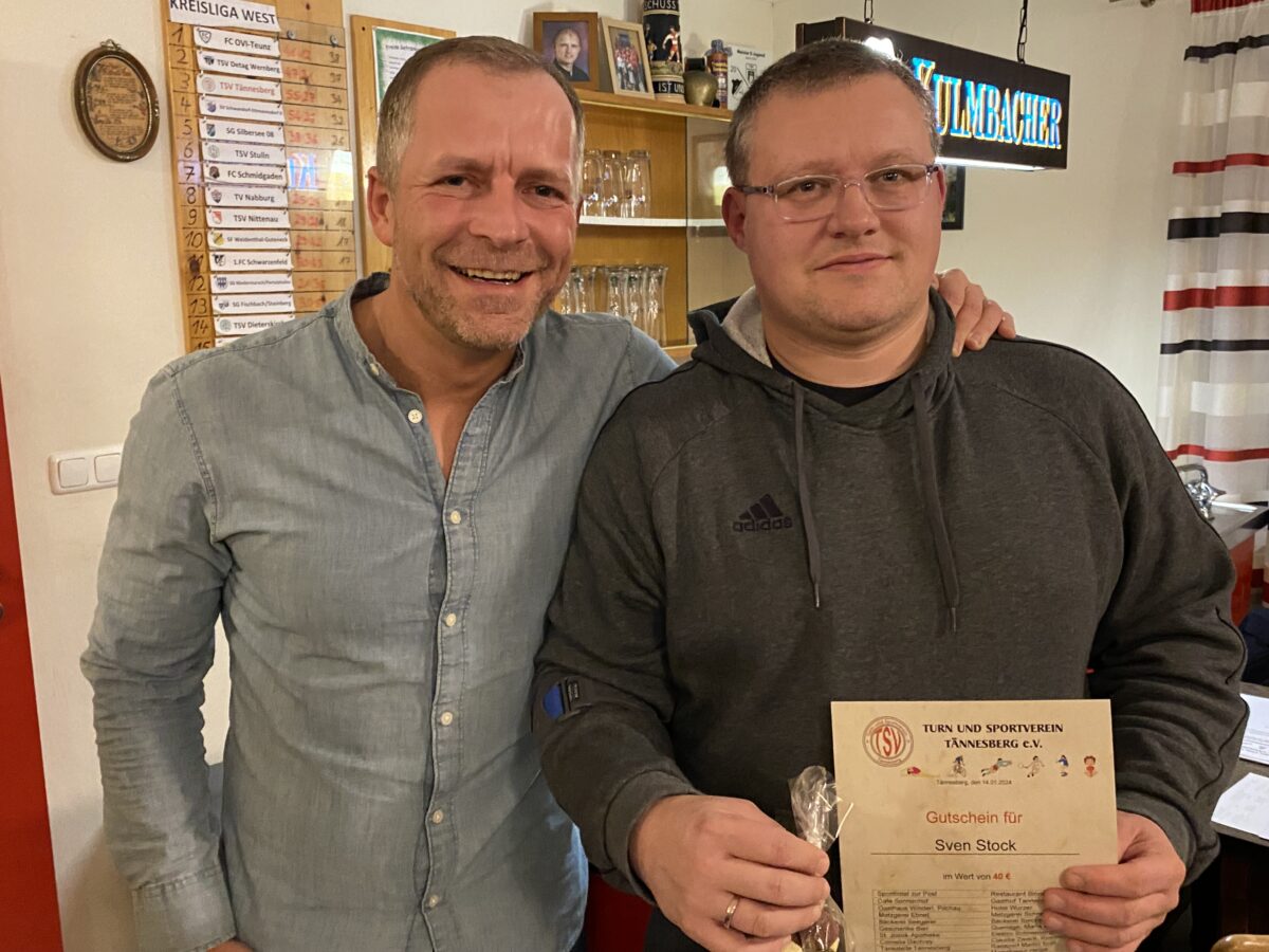 Der bisherige Abteilungsleiter Sven Stock wurde nach zwölf Jahren erfolgreicher Arbeit auf eigenen Wunsch verabschiedet. In seiner Zeit schaffte, so sein Nachfolger Thomas Hauer, die erste Herrenmannschaft erstmal den Aufstieg in die Bezirksliga, konnte aber leider die Klasse nicht halten. Sein Bestreben war stets, die Jüngsten für den Fußball zu begeistern, sodass Mannschaften von der F bis zur B Gruppe aktiv mitgespielt haben. Als Sportheimwirt hat er mit seiner Frau Bernadette auch für ein gutes Umfeld gesorgt.