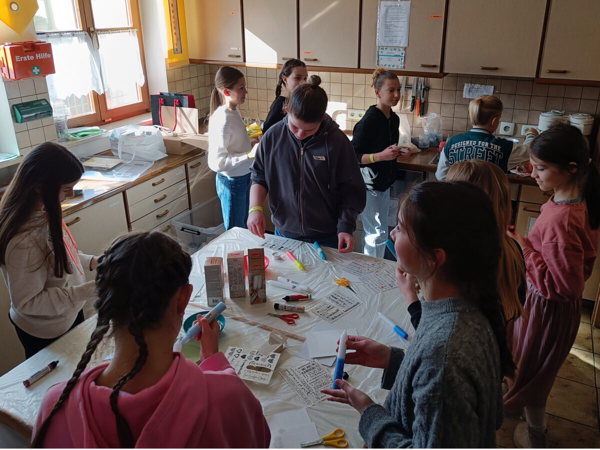 14 verschiedene Workshops wurden am Vormittag und/oder Nachmittag angeboten und in die Räumlichkeiten des Pfarrheims, der Grund- und Mittelschule sowie des Kinderhauses verteilt. Zur Auswahl standen diese Themen: Erste Hilfe, Exit Game, Kahoot, Gemeinschaftsspiele, Kerzen in Farben tauchen und bemalen, kreativ mit Herz und Hand, kreatives Malen „on fire“, Light and Sound, Holzarbeiten, Party-Häppchen, Schmuck basteln, Steine bemalen und ein Theaterworkshop sowie Shuffle-Dance.