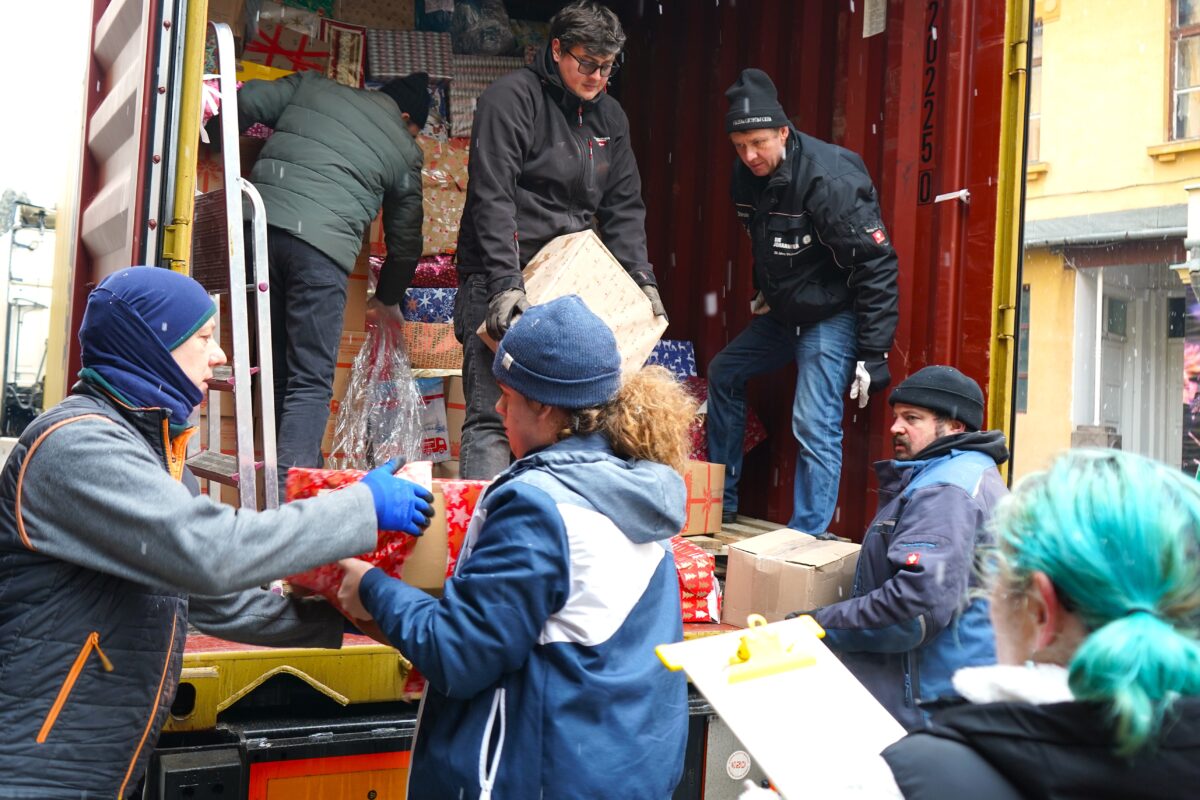 Am Abend des 27. Dezember sammelten sich dann alle Fahrer mit ihren Lastwagen im Jugenddorf Lokod in der Nähe der Stadt Brasov. In dem kleinen Dorf in den Karpaten kümmert sich eine deutsche Stiftung um Jugendliche, die ihre gesamte Kindheit in Waisenhäusern verbracht haben. Diese Jugendlichen, die oft eine Behinderung haben, können hier in stiftungseigenen Häusern leben und in Werkstätten arbeiten. Auch hier wurde eine große Anzahl an Paketen übergeben. „Mich haben vor allem die Lastwagen-Fahrer beeindruckt“, berichtet Matthias Walk. „Die nehmen sich extra Urlaub, um die Pakete nach Rumänien zu fahren. Viele von ihnen machen das schon seit mehr als 20 Jahren.“