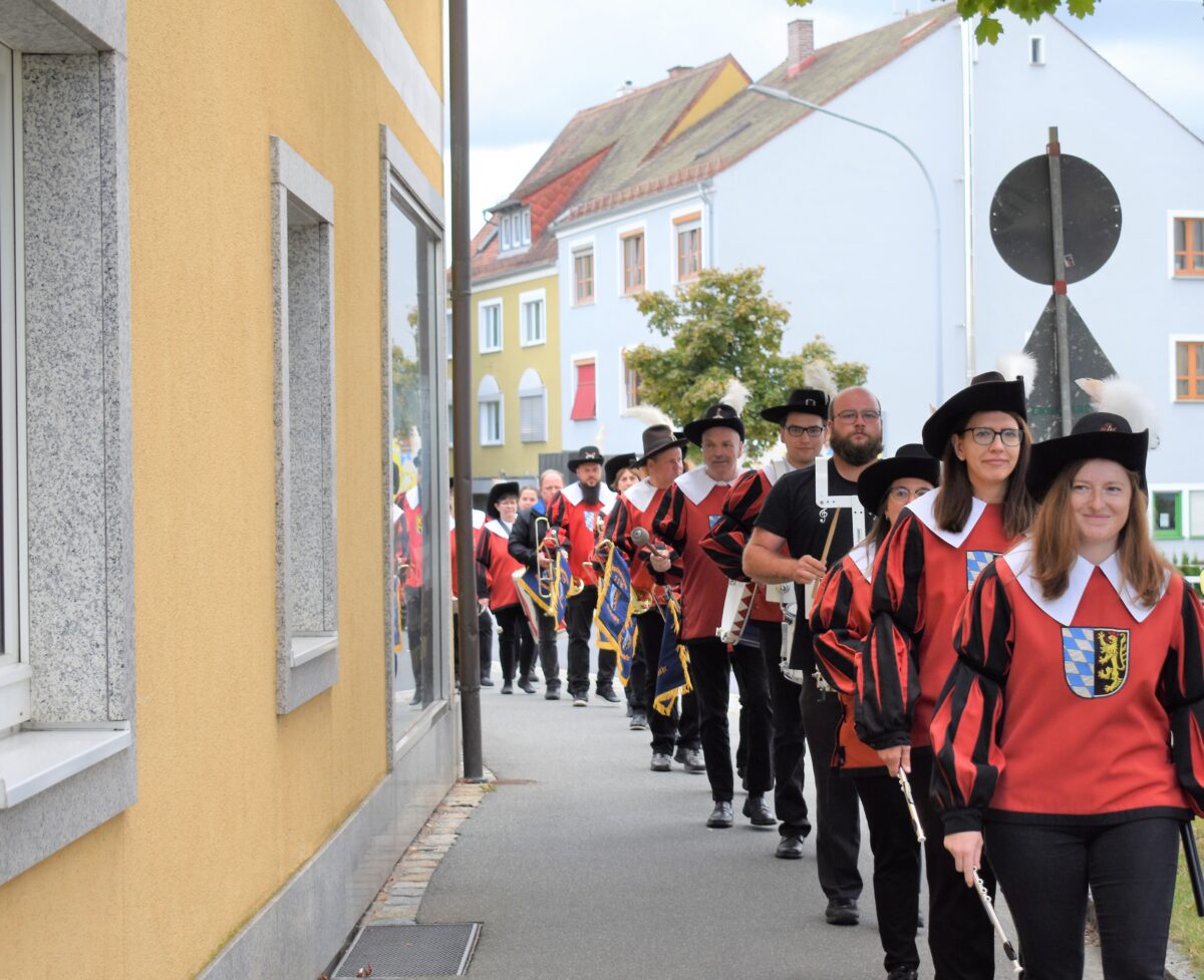 Um 11.45 Uhr machten sich 16 Mitglieder des Spielmannszuges Grafenwöhr auf den Weg, um Petra Melchner, ihre “Spielmannszug-Mama” zu überraschen, damit ihr der Abschied von ihrem Geschäft nicht zu schwer fallen soll. Neben einigen Stücken, die unter der Leitung von Christina Eibel gespielt wurden, war das “Il Silenzio”, das Reinhold Retzer erklingen ließ, besonders emotional, so dass Petra mit den Tränen zu kämpfen hatte.