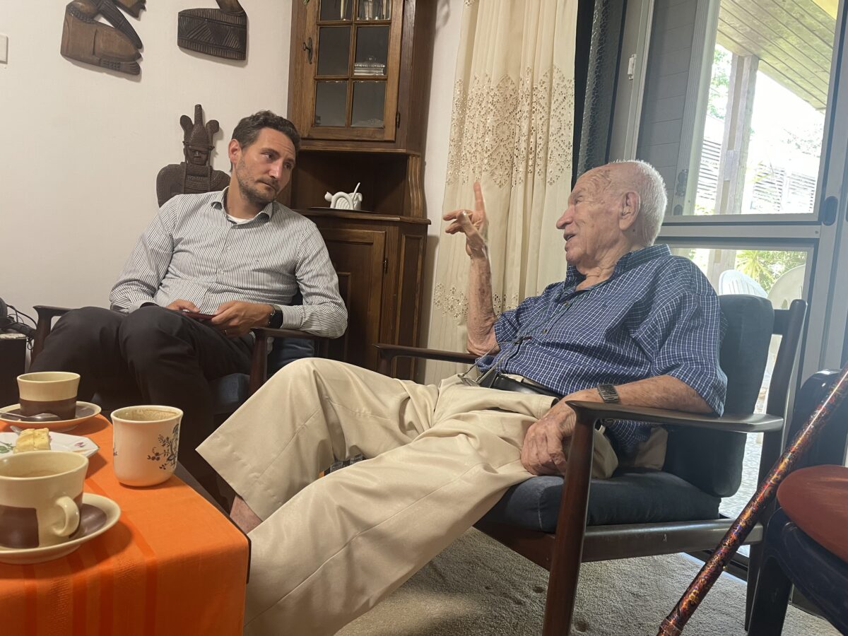 “Wie hält man das alles aus?”, will Botschaftsvertreter Mattheis am Ende von dem Senior wissen. “Der Mensch kann alles überstehen”, antwortet Heiman. “Aber es lässt seine Spuren zurück.” In einem Buch über sein Leben berichtet Daniel Heiman, wie 1982 sein jüngerer Sohn Rani im Libanon-Krieg fiel. Die schlimmste Nachricht seines Lebens. Auf der Fahrt zur Beerdigung im Taxi habe ihn sein älterer Sohn Ofer aufgefordert: “Tistakev”, was so viel bedeutet wie: “Richte dich auf.” Das ist sein Lebensmotto.