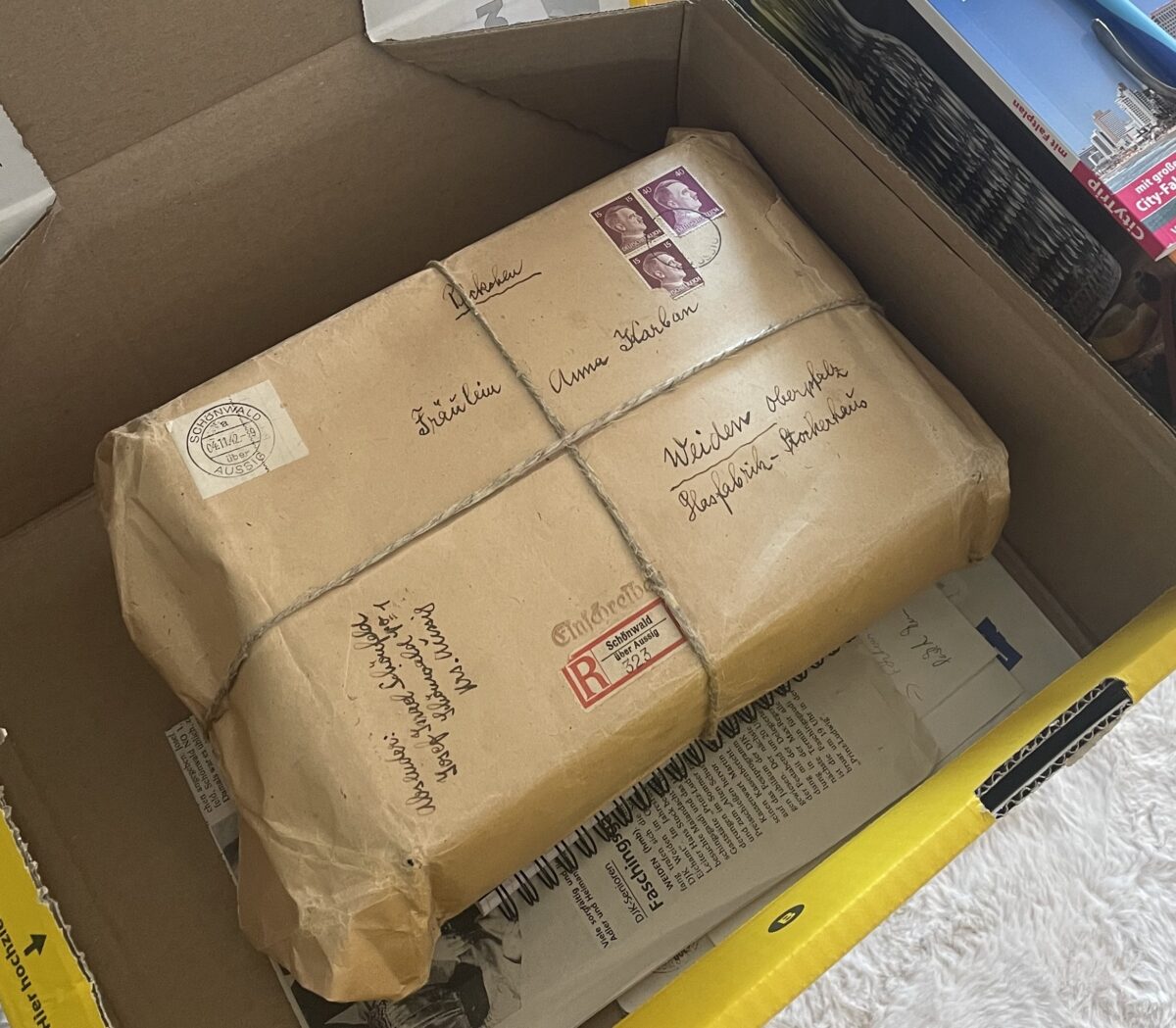 Das Paket wurde Anna Karban aus Weiden anvertraut, der früheren Haushälterin der Adlers. Sie verwahrte es (öffnete es nie!). Es wurde zweimal vererbt, zog mit um. Ehe 1992 eine Nichte den Karton an ein Mitglied der Gesellschaft für Christlich-Jüdische Zusammenarbeit gab. Es wurden etliche Versuche unternommen, Nachfahren zu finden. Die Kinder Theo und Käthe schienen “verschollen”, wie es 1996 in den Oberpfälzer Nachrichten hieß.