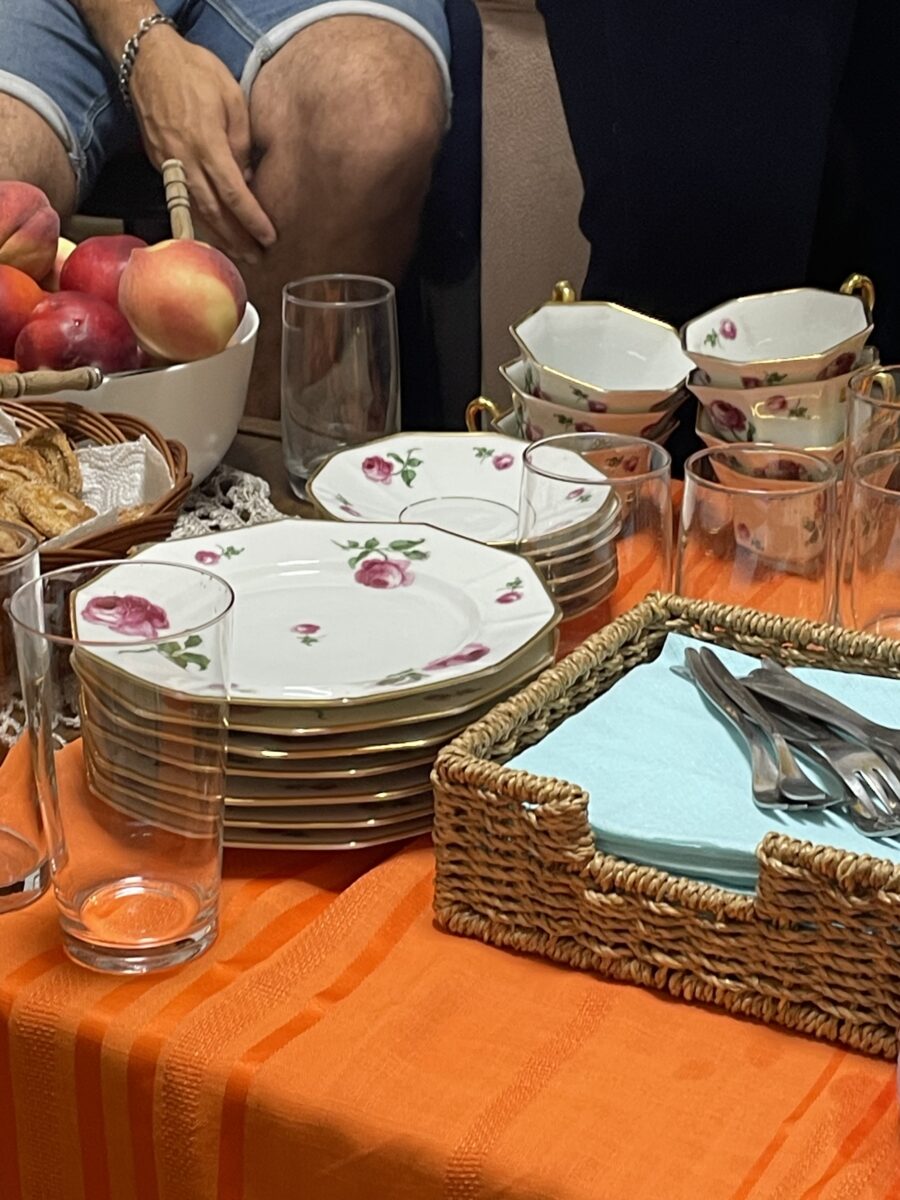 Sohn, Schwiegertochter und Enkel wollen bei der Übergabe dabei sein. Im Wohnzimmer wird es eng. Der Tisch biegt sich vor Speisen und Getränken. Feigen, Trauben, Pfirsiche aus Israel. Sesamstangen und Käsekuchen, alles serviert auf Geschirr, das einem bekannt vorkommt. Es trägt den Stempel „Bavaria Tirschenreuth“. Selbst das Service hat Vergangenheit. Daniels Eltern hatten es 1922 in Nürnberg zur Hochzeit bekommen. Als ihnen klar war, dass ihnen alles genommen würde, schickten sie es zu nichtjüdischen Verwandten nach Dresden.