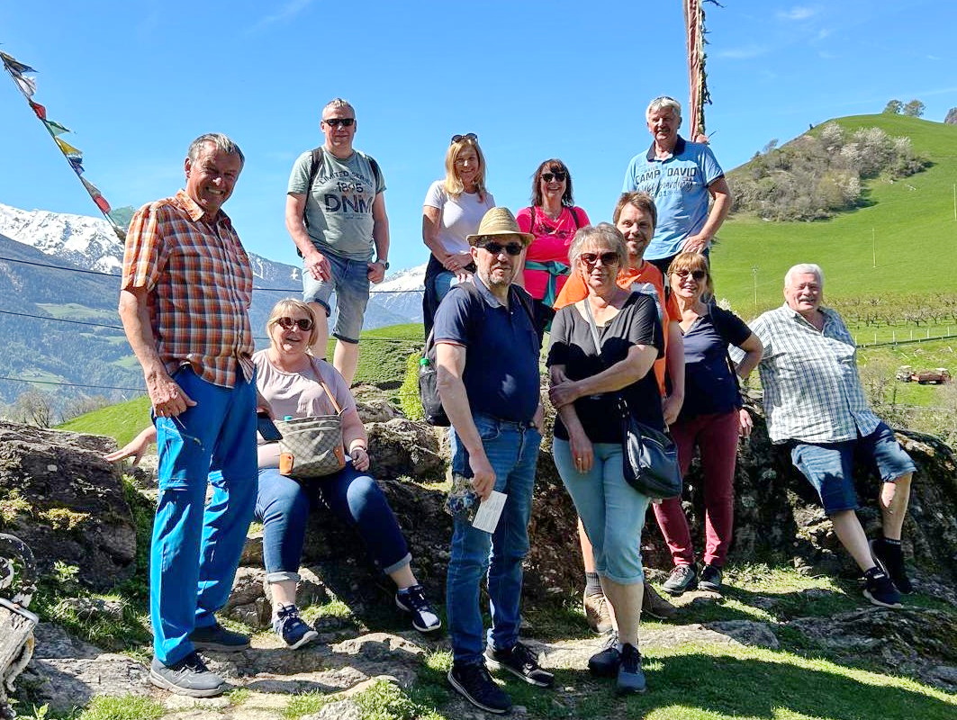 Südtirol ist im Frühjahr ein besonders attraktives Reiseziel für Gruppenausflüge, die für Etzenrichter in der Regel in die Patengemeinde Algund führen. Fast alle Vereine pflegen die Partnerschaft und verfügen über gute Beziehungen auf privater und kommunalpolitischer Ebene. In der vergangenen Woche unternahm die UPW mit 50 Personen eine Busreise nach Algund und verbrachte dort sonnige Frühlingstage, angereichert mit kontrastreichen Terminen.