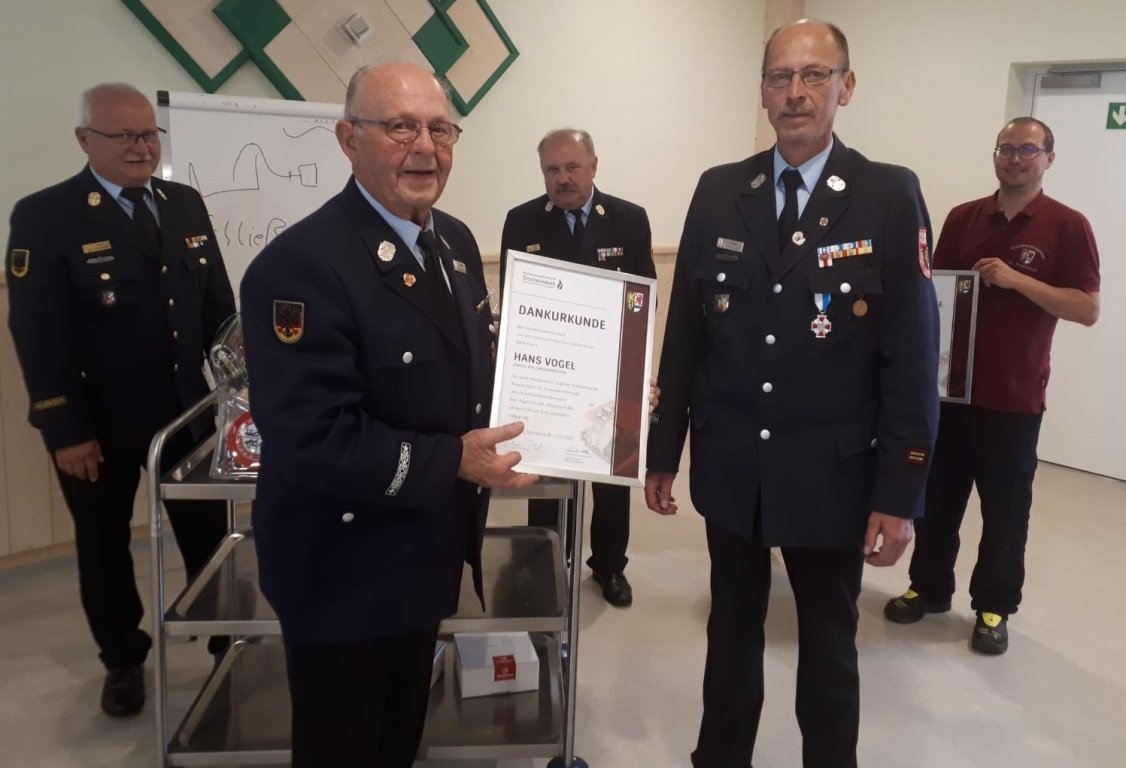 Der Entscheidung Vogels als Maschinistenausbilder aufzuhören folgte auch sein jahrelanger Kamerad und Freund Hans Zetlmeisl. Der zum Ehrenkreisbrandinspektor ernannte Feuerwehrler ist ebenfalls kein Unbekannter und ein Ehrenamtler und Feuerwehrler durch und durch. Nach seinem Aufstieg zum Kreisbrandmeister im Jahr 1990 unterstützte Hans Zetlmeisl den Maschinistenlehrgang seit 1991 als Ausbilder.