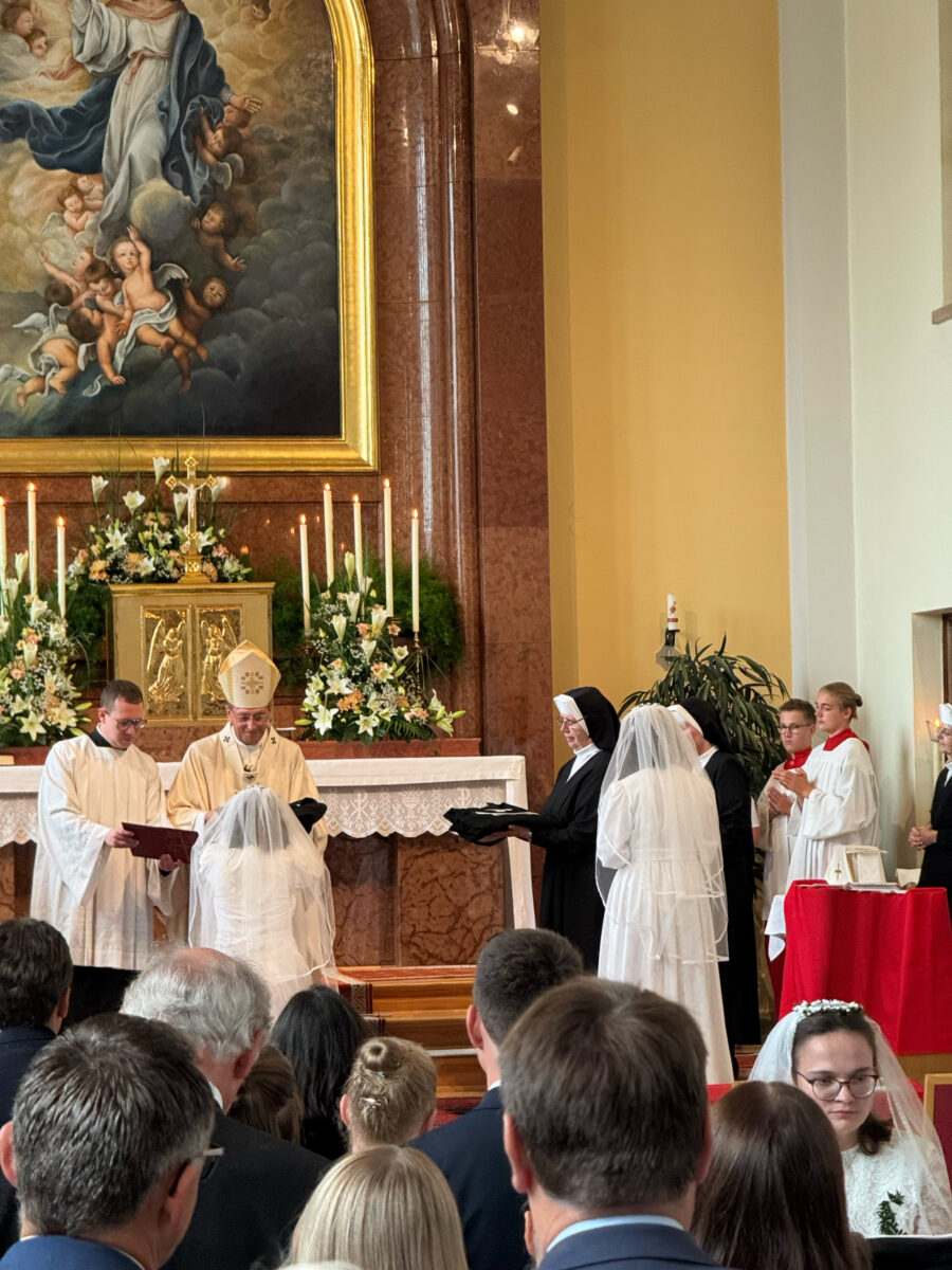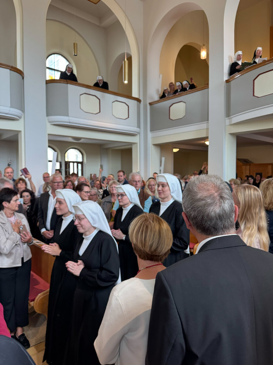 Musikalisch begleitet wurde die Feier vom Schwesternchor und einem Instrumentalensemble. Im Anschluss traf sich die Festgemeinde in der Turnhalle der Realschule zum gemeinsamen Mittagessen. Für heitere Stimmung sorgte ein Sketch der „älteren“ Schwestern, die den Neuen mit einem Begrüßungslied samt Ukulelen-Einlage ein Lächeln ins Gesicht zauberten.