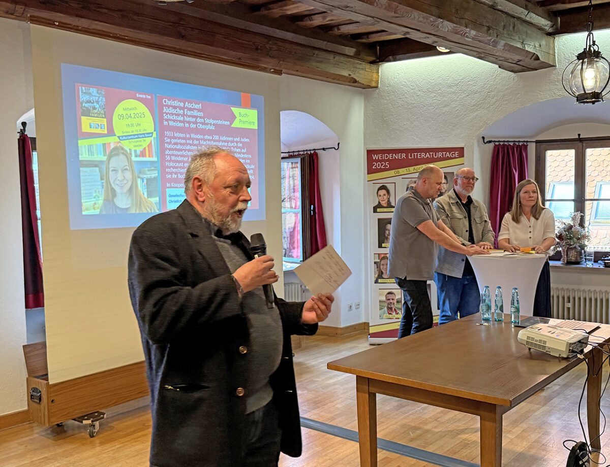 Ascherl dankte allen, die an der Entstehung des Buchs und der Organisation des Abends beteiligt waren: Ruth Neumann (Ascherl mit „schauen Sie mal, was Sie hier angerichtet haben“) für die kurzfristige Aufnahme ins (im übrigen fast ausverkaufte) Programm der diesjährigen Weidener Literaturtage. Für sein Wissen und seine Bereitschaft, es zu teilen, dankte Ascherl Dr. Sebastian Schott. Er hat schon Anfang der 1990er für seine Dissertation über die Jüdische Gemeinde Weiden umfassend recherchiert.