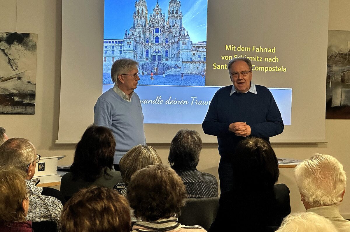 Karl Balk, ehemaliger Bürgermeister von Schirmitz, berichtete im Bürgersaal über seine Fahrradreise auf dem Jakobsweg nach Santiago de Compostela von 2018 bis 2023. Die Veranstaltung war so beliebt, dass Zusatztermine angeboten werden.