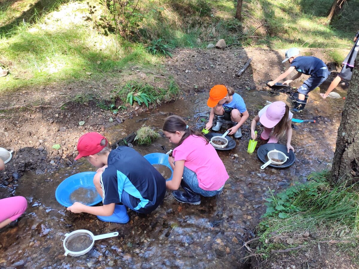 Einige fanden ein „Flinserl“ des begehrten Edelmetalls und durften dies mit nach Hause nehmen. Mit einem Gläschen mit Gold ausgestattet fuhren die Mädchen und Buben reich an Erfahrung und Ferienunterhaltung wieder an die Sonnenseite des Fahrenbergs.