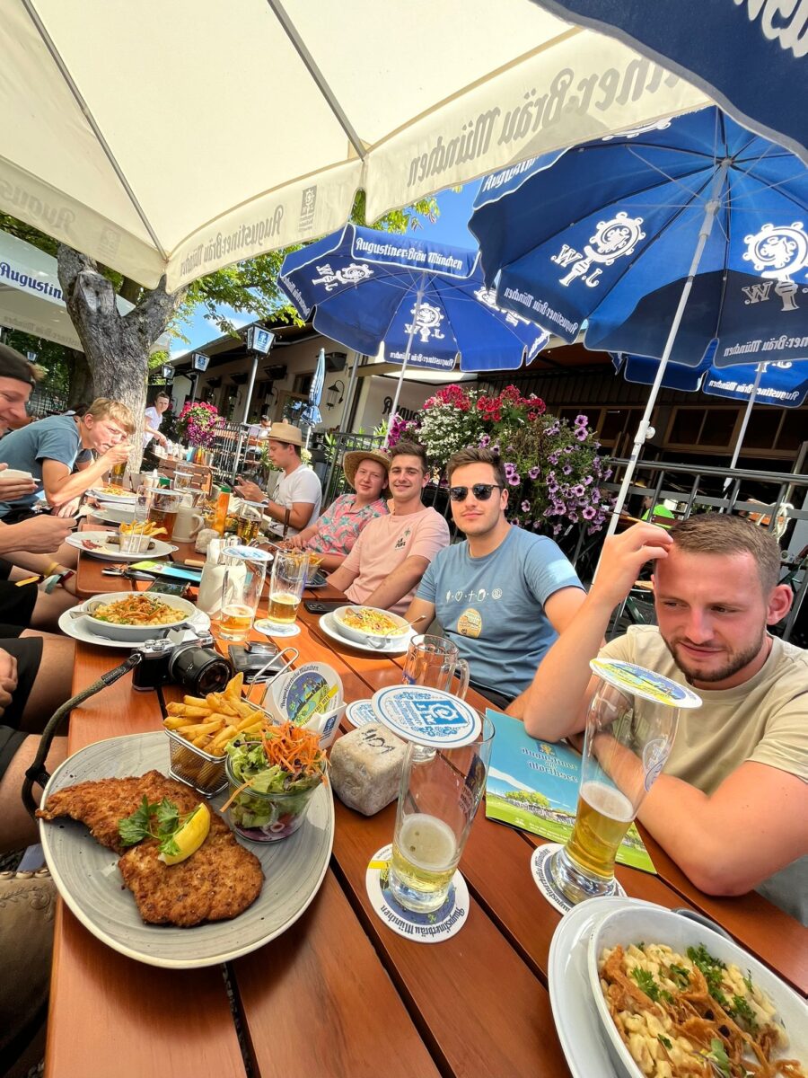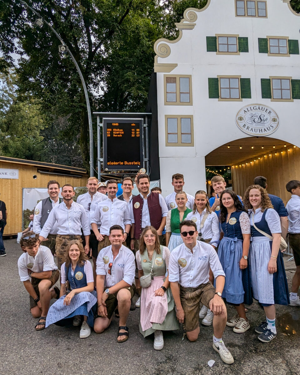Der Samstag startete mit einem gemütlichen Weißwurst-Frühstück. Danach machte leider das regnerische Wetter der geplanten Wanderung am Alpspitzberg einen Strich durch die Rechnung. Kurzfristig wurde entschieden, das örtliche Hallenbad zu besuchen. Dafür lief abends alles nach Plan: Es ging auf die Allgäuer-Festwoche in Kempten. Bei bestem Ambiente, super Musik und besserem Wetter genoss die Waldthurner Landjugend bei Bier und Aperol-Spritz den letzten Urlaubs-Abend.