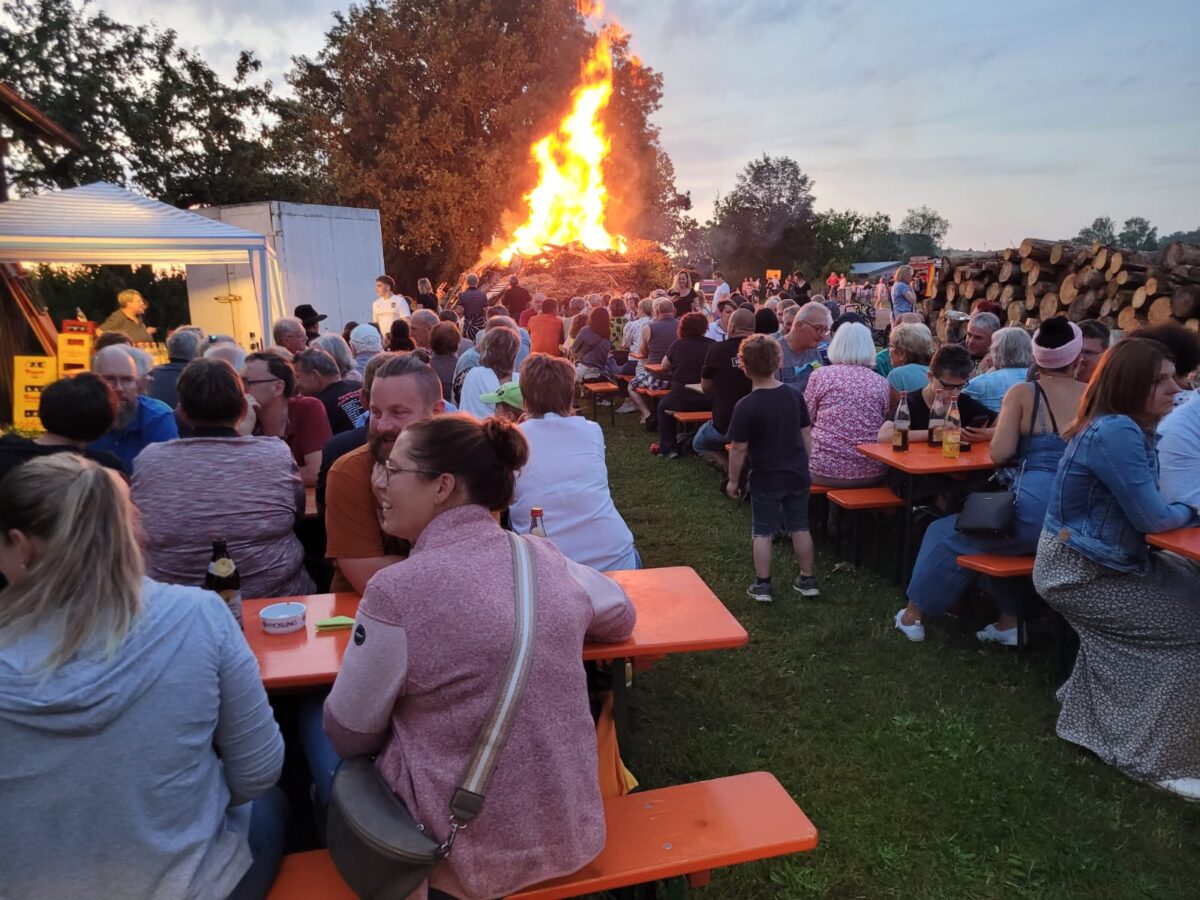 Nachdem sich die Nachmittagsgewitter verzogen hatten, verbrachten mehr als 200 Gäste einen schönen Sommerabend beim Petersfeuer am Ortsausgang in der Störnsteiner Straße. Viele Kinder waren gespannt dabei, als Karl Höning das Feuer anzündete. Durch den Regen am Nachmittag dauerte es ein bisschen, bis die Flammen loderten. Jochen Schneider hatte dem Waldverein Püchersreuth für das Fest wie die Jahre zuvor seinen Stodl zur Verfügung gestellt. „Frauenpower M&M“ sorgten für ausgelassene Stimmung.