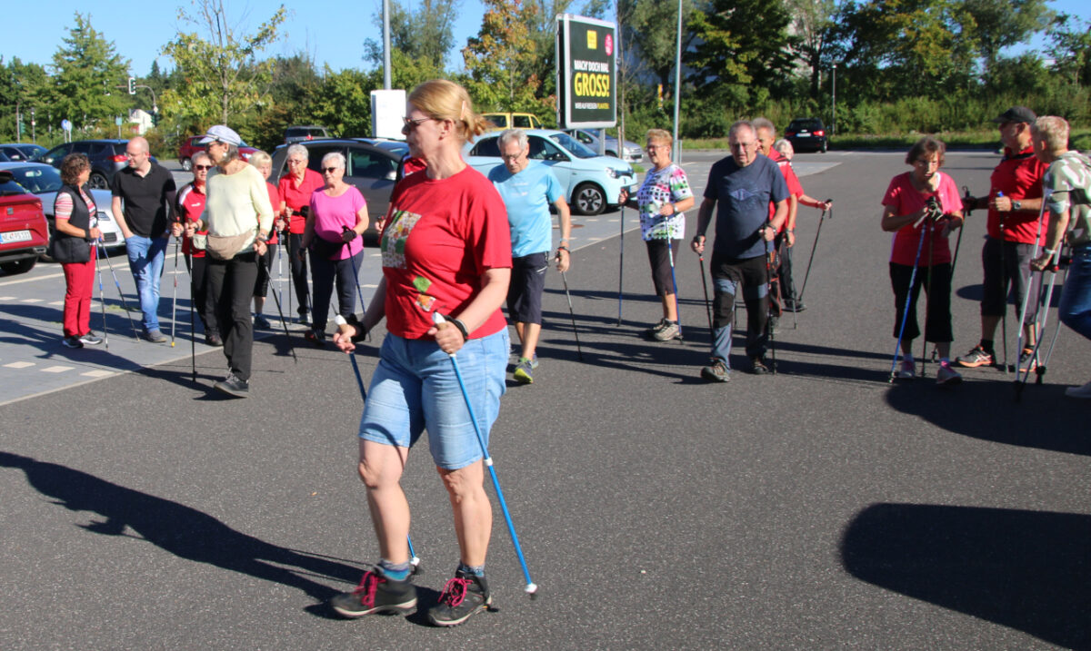 Christa Grundler, Alexanders Mutter, ist seit 21 Jahren, seit Gründung der Nordic-Walking-Gruppe, eine der Übungsleiterinnen. Mit ihren 73 Jahren hat sie kürzlich eine „Alpenüberquerung“ gemeistert, prangt stolz auf ihrem T-Shirt. „Das war nicht so wild“, sagt sie bescheiden, „wir sind so zwischen 13 und 17 Kilometer am Tag marschiert von Garmisch auf Sterzing – aber die Höhenmeter hatten’s halt in sich.“ Ob sie als Teamchefin eine strenge Antreiberin ist? „Bei uns gehen sie freiwillig“, lacht sie, während sich der Parkplatz mit weiteren tatendurstigen grauen Panthern in Sportklamotten und deren munteren Geplapper füllt.