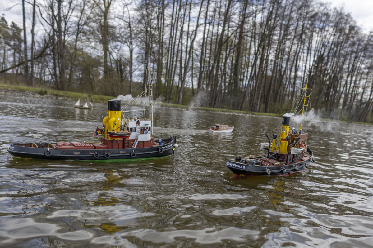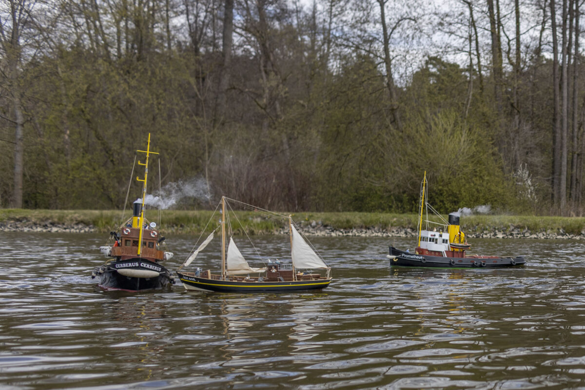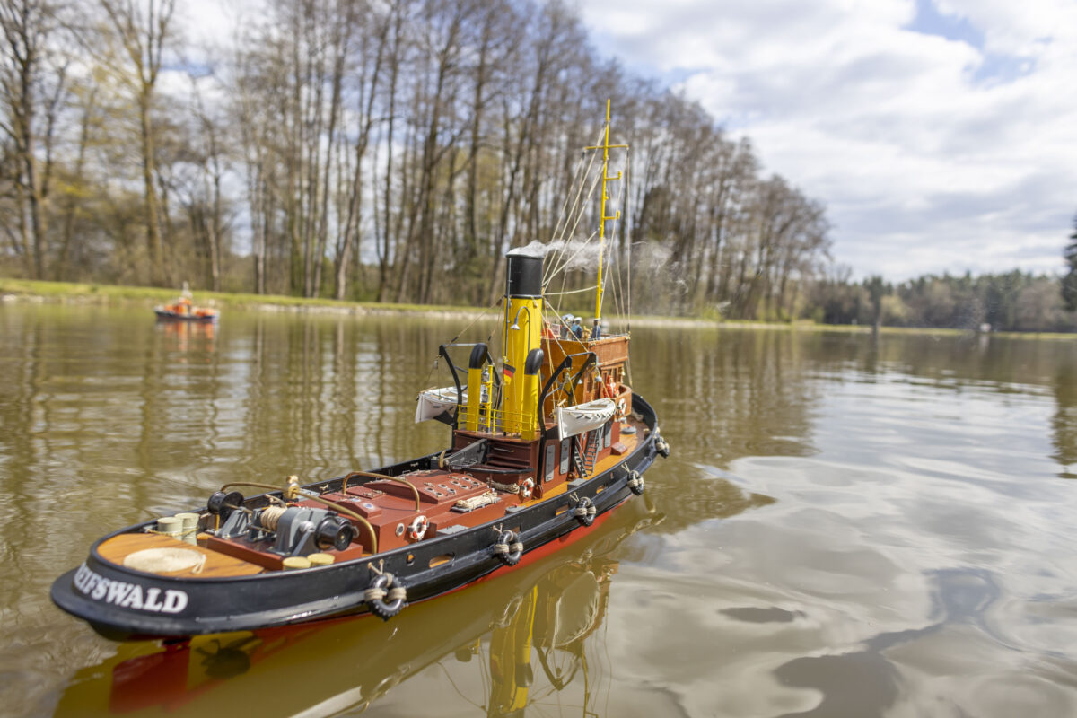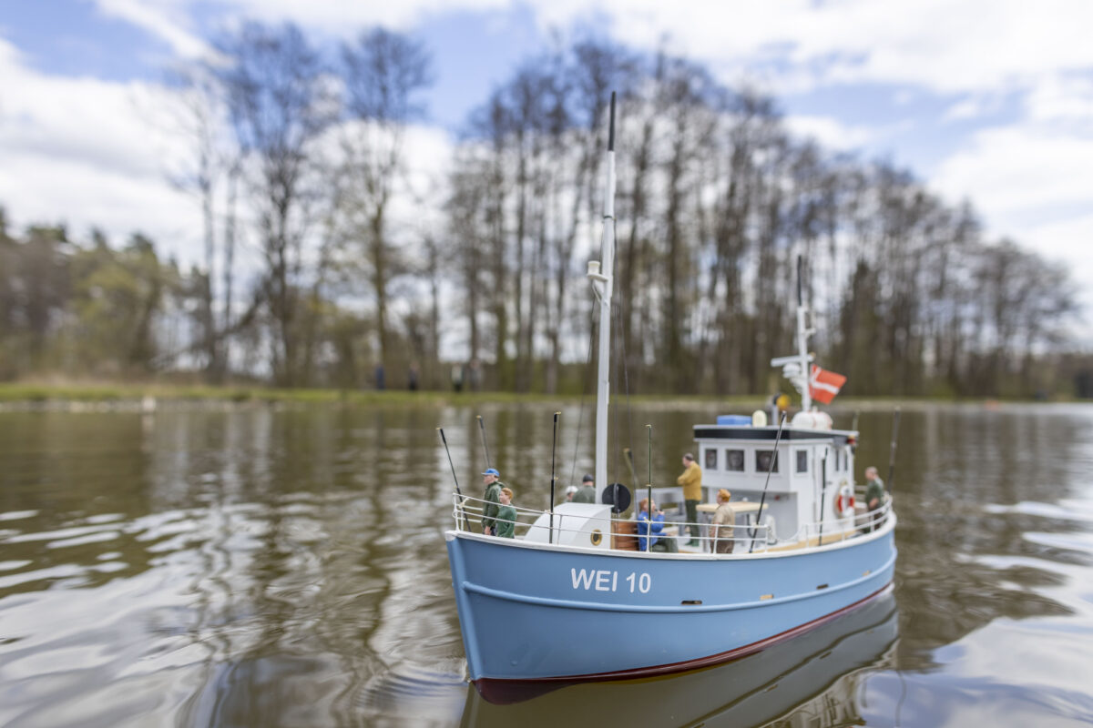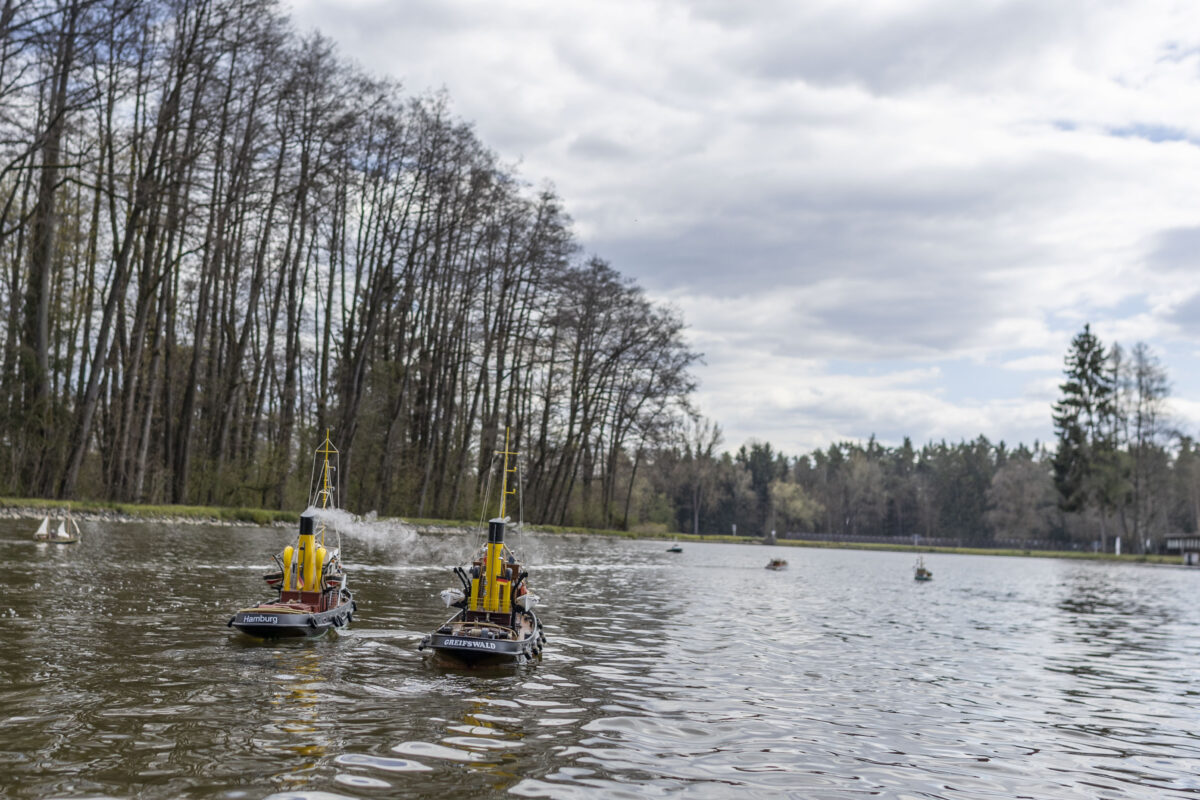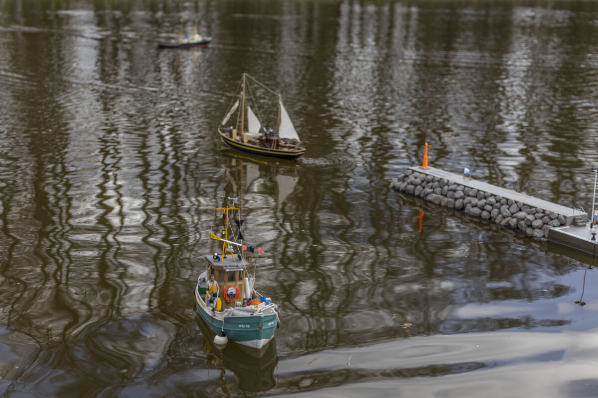 Weil das Vereinsleben während der Coronapause meist zu Hause in den Kellerwerften stattfand, entstanden viele neue Schiffsmodelle. Diese schwimmenden Kunstwerke konnten nun endlich auf ihre Jungfernfahrt geschickt werden. Hafenschlepper sind im Verein genauso beliebt wie Fischereifahrzeuge. Viele Modelle sind elektrobetrieben oder fahren auch nur mit der Kraft des Windes – wie ein Segelboot eindrucksvoll bewies. Die meisten Modelle haben auch Sonderfunktionen wie Rauch- und Soundgeneratoren, können Ankern oder ihre Beleuchtung einschalten.