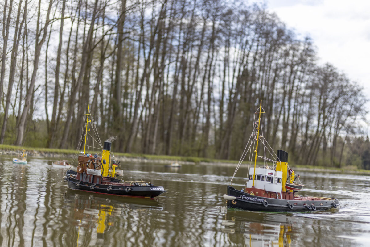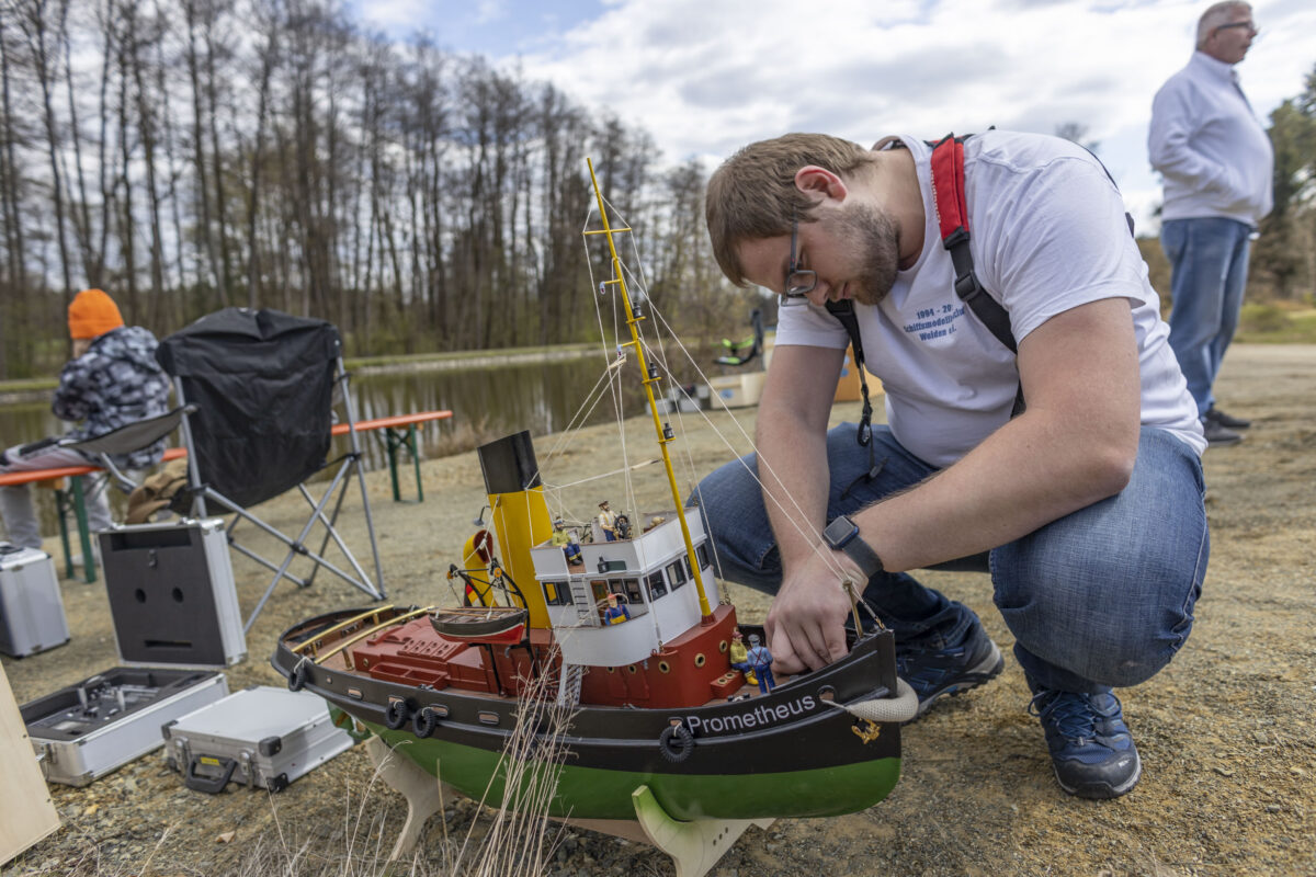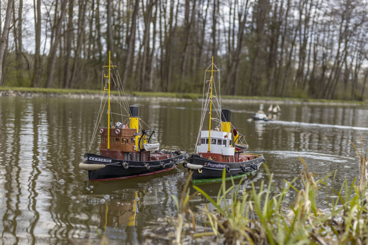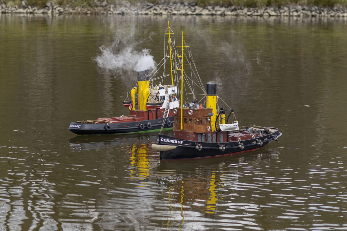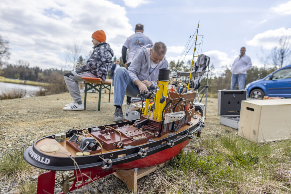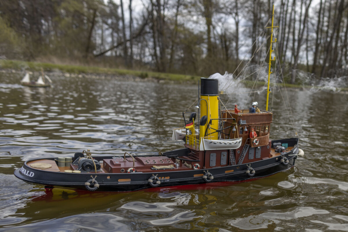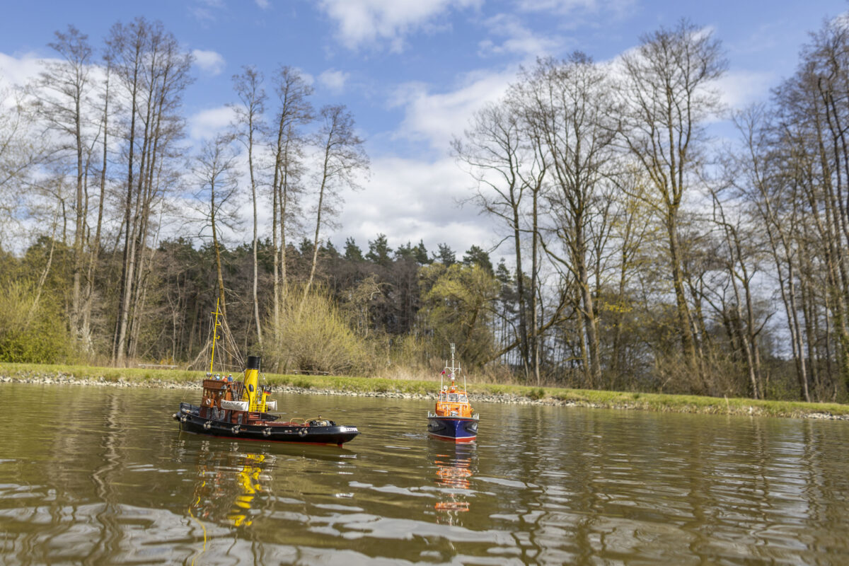 Weil das Vereinsleben während der Coronapause meist zu Hause in den Kellerwerften stattfand, entstanden viele neue Schiffsmodelle. Diese schwimmenden Kunstwerke konnten nun endlich auf ihre Jungfernfahrt geschickt werden. Hafenschlepper sind im Verein genauso beliebt wie Fischereifahrzeuge. Viele Modelle sind elektrobetrieben oder fahren auch nur mit der Kraft des Windes – wie ein Segelboot eindrucksvoll bewies. Die meisten Modelle haben auch Sonderfunktionen wie Rauch- und Soundgeneratoren, können Ankern oder ihre Beleuchtung einschalten.