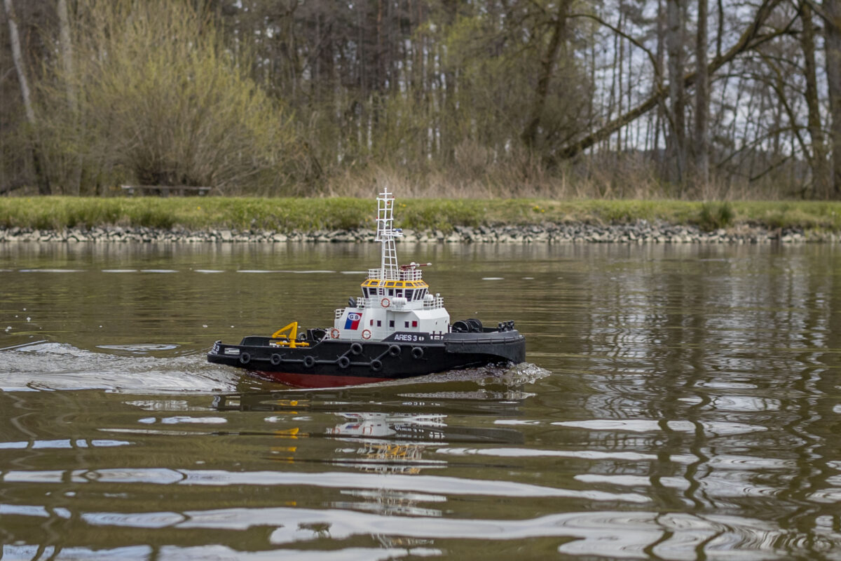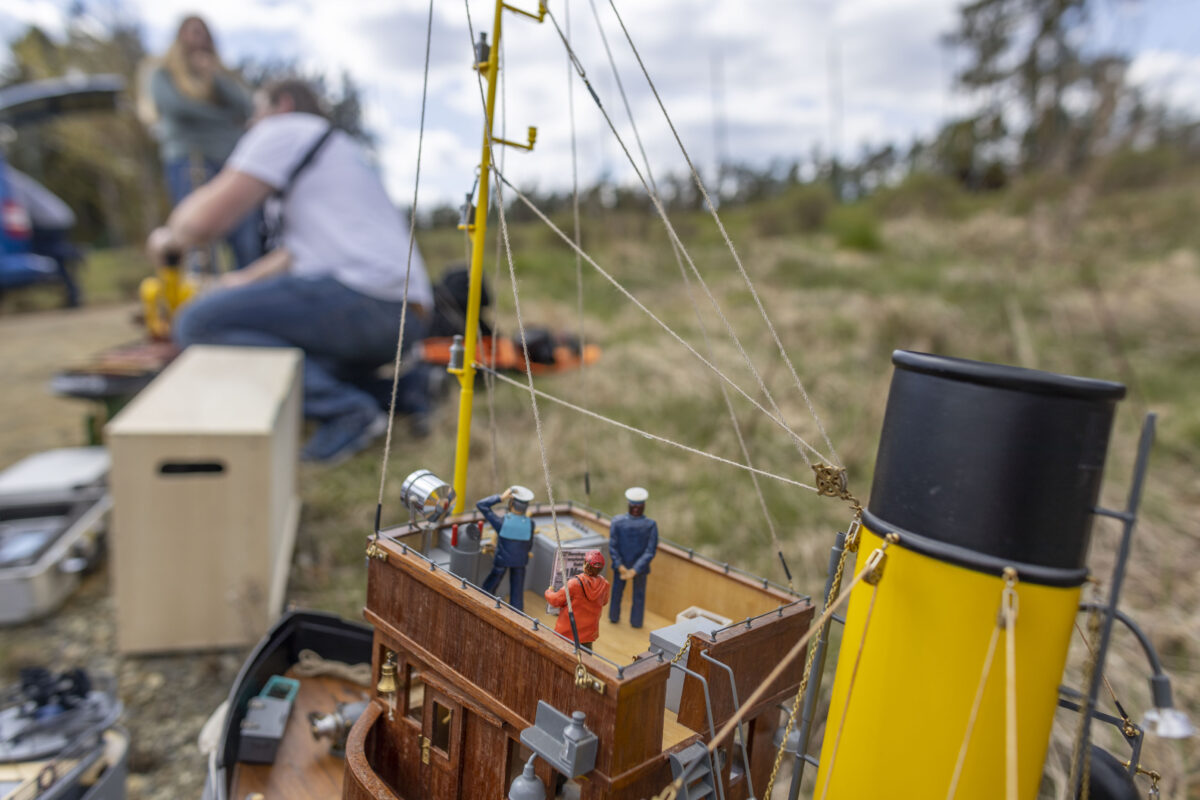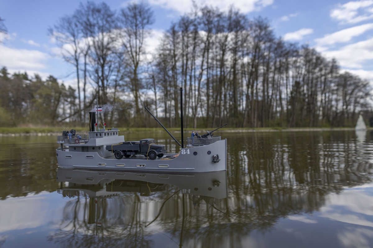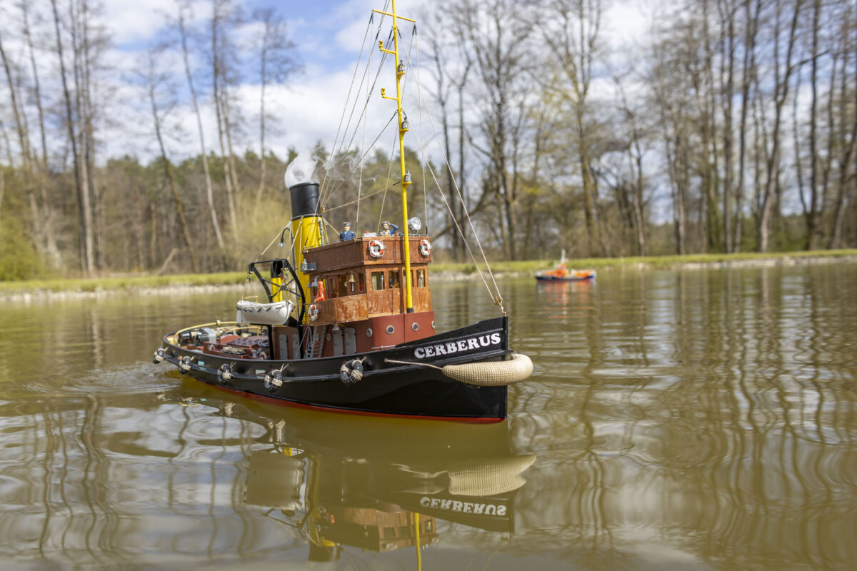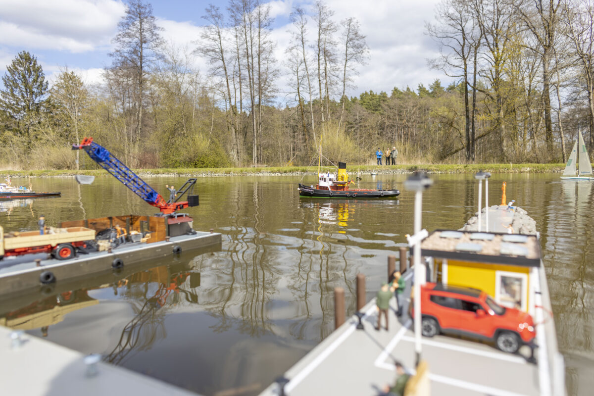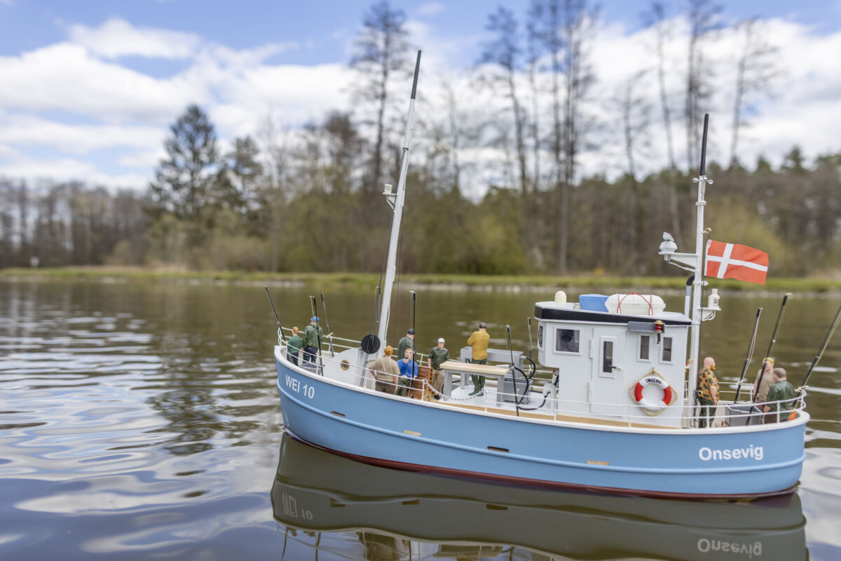 Weil das Vereinsleben während der Coronapause meist zu Hause in den Kellerwerften stattfand, entstanden viele neue Schiffsmodelle. Diese schwimmenden Kunstwerke konnten nun endlich auf ihre Jungfernfahrt geschickt werden. Hafenschlepper sind im Verein genauso beliebt wie Fischereifahrzeuge. Viele Modelle sind elektrobetrieben oder fahren auch nur mit der Kraft des Windes – wie ein Segelboot eindrucksvoll bewies. Die meisten Modelle haben auch Sonderfunktionen wie Rauch- und Soundgeneratoren, können Ankern oder ihre Beleuchtung einschalten.