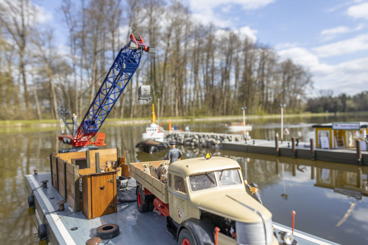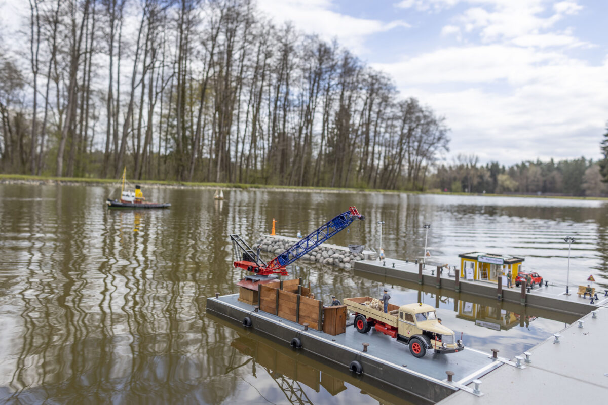 Am Ostermontag herrschte am Bootsweiher im Schätzlerbad ein wildes Treiben, das immer wieder Wanderer und Besucher zum Staunen brachte. Die Mitglieder des Schiffsmodellbauclubs Weiden hatten ihre Modellboote zu Wasser gelassen und Teile ihrer Hafenanlage aufgebaut.