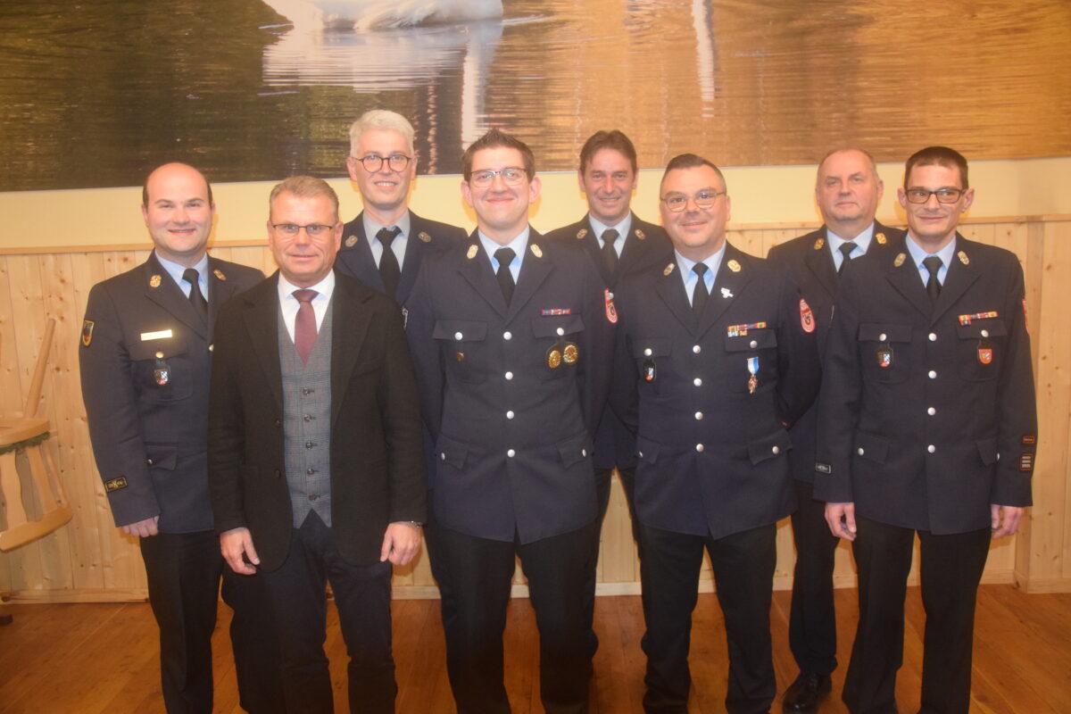 Zudem nahm Stessmann in seiner letzten Dienstversammlung im Gasthof “Weißer Schwan” die Verpflichtung mehrerer Neuaufnahmen vor und verantwortete Beförderungen und Ehrungen, darunter die Ehrung von Markus Weidner für 40 Jahre aktive Dienstzeit.