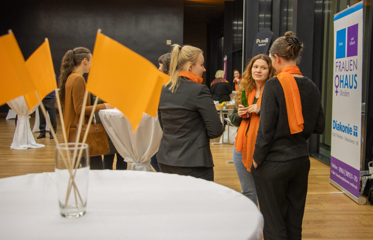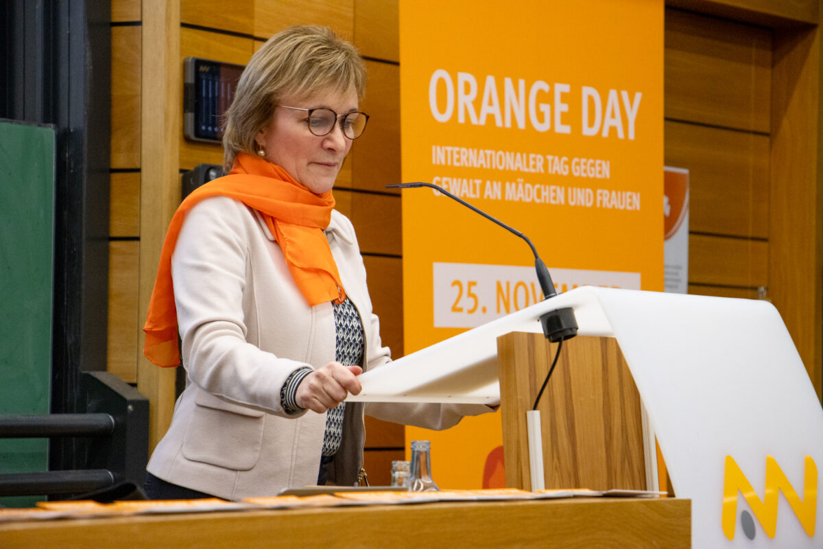 Vor den Vorträgen begrüßten die Vizepräsidentin und Frauenbeauftragte der OTH Amberg-Weiden Prof. Dr. Christiane Hellbach und Ulrike Küblbeck, diesjährige Präsidentin des Inner-Wheel Clubs Weiden, die Gäste. Hellbach betonte, man freue sich über jeden, der Engagement und Interesse für den „Orange Day“ zeigt. Sie sei sehr stolz darauf, was in Weiden bereits auf die Beine gestellt wurde und wies darauf hin, dass Frauenrechte nach wie vor keine Selbstverständlichkeit seien.