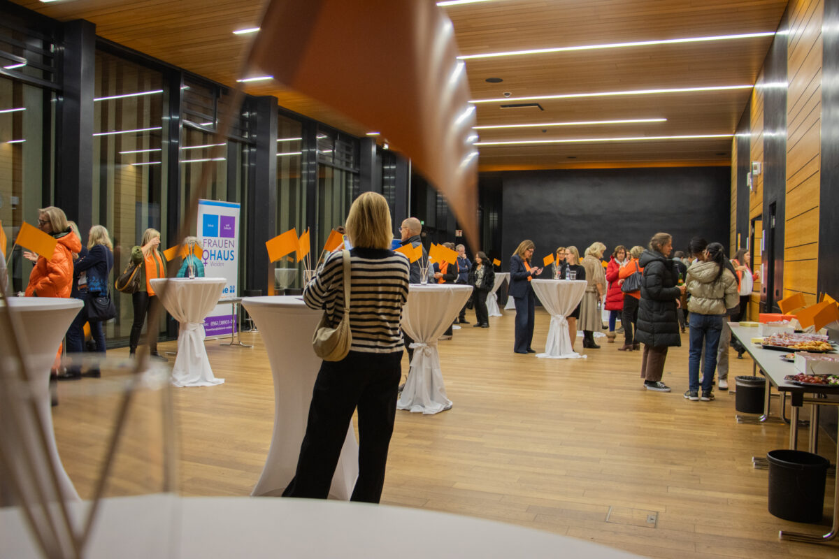 Schon vor dem Beginn der Vorträge konnten die Besucherinnen und Besucher im ungezwungenen Austausch die einzelnen teilnehmenden Organisationen näher kennenlernen. Zudem gab es Informationsstände von Dornrose e. V. und dem Frauenhaus.