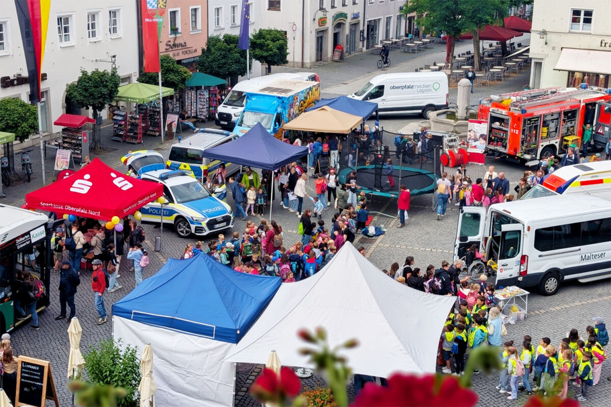 Zahlreiche Partnerinstitutionen unterstützten den Aktionstag mit interaktiven Angeboten. So konnten die rund 400 teilnehmenden Kinder aus Kindergärten und Grundschulen unter anderem ein Einsatzfahrzeug der Polizei, ein Löschfahrzeug der Feuerwehr sowie einen Rettungswagen des Bayerischen Roten Kreuzes bestaunen. Die Malteser informierten mit einem Rollstuhltransportfahrzeug über Barrierefreiheit, das Busunternehmen Wies bot einen Linienbus zum Erkunden sowie wichtige Tipps zum Busfahren.