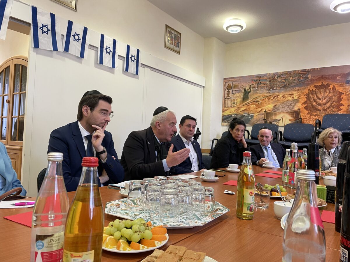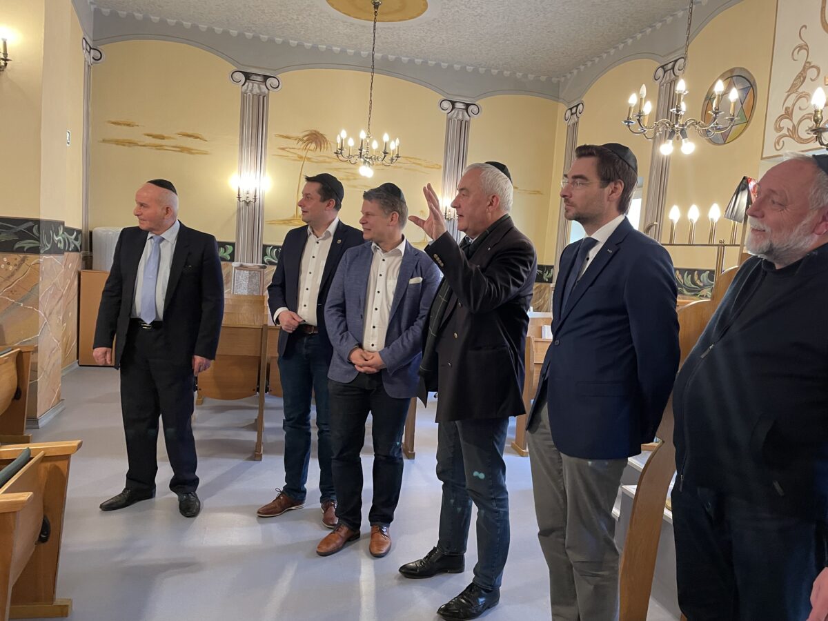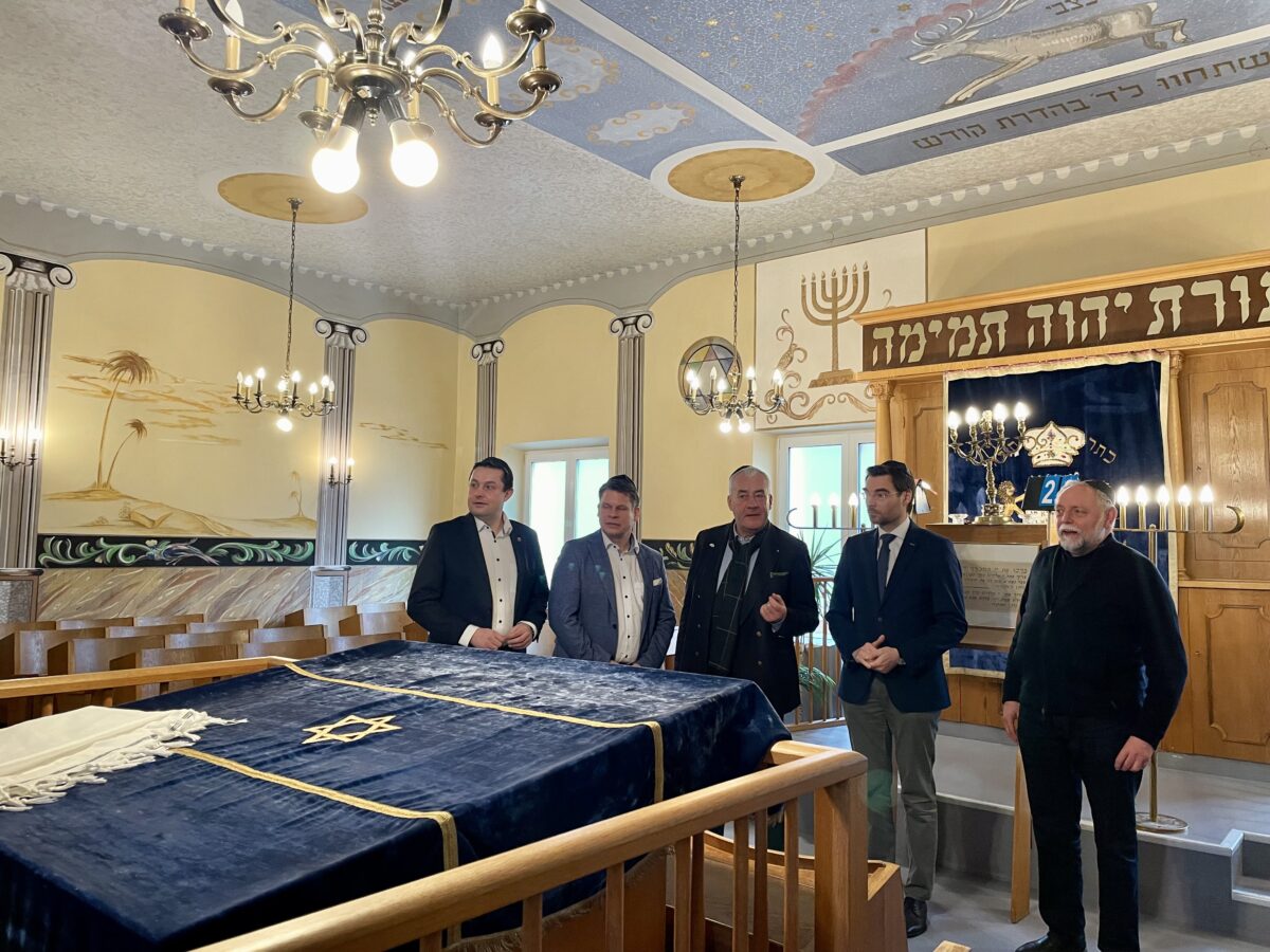 Spaenle und Oetzinger besuchen am Montag – begleitet von den lokalen CSU-Vertretern Benjamin Zeitler und Stephan Gollwitzer – die jüdische Gemeinde in Weiden. Beim Gespräch in der Synagoge sitzen neben Vorsitzenden Leonid Shaulov und Marina Jurowetzkaja auch Werner Friedmann und Pfarrer Alfons Forster dabei. Die beiden sind die Vorsitzenden der Gesellschaft für Christlich-Jüdische Zusammenarbeit (GCJZ).