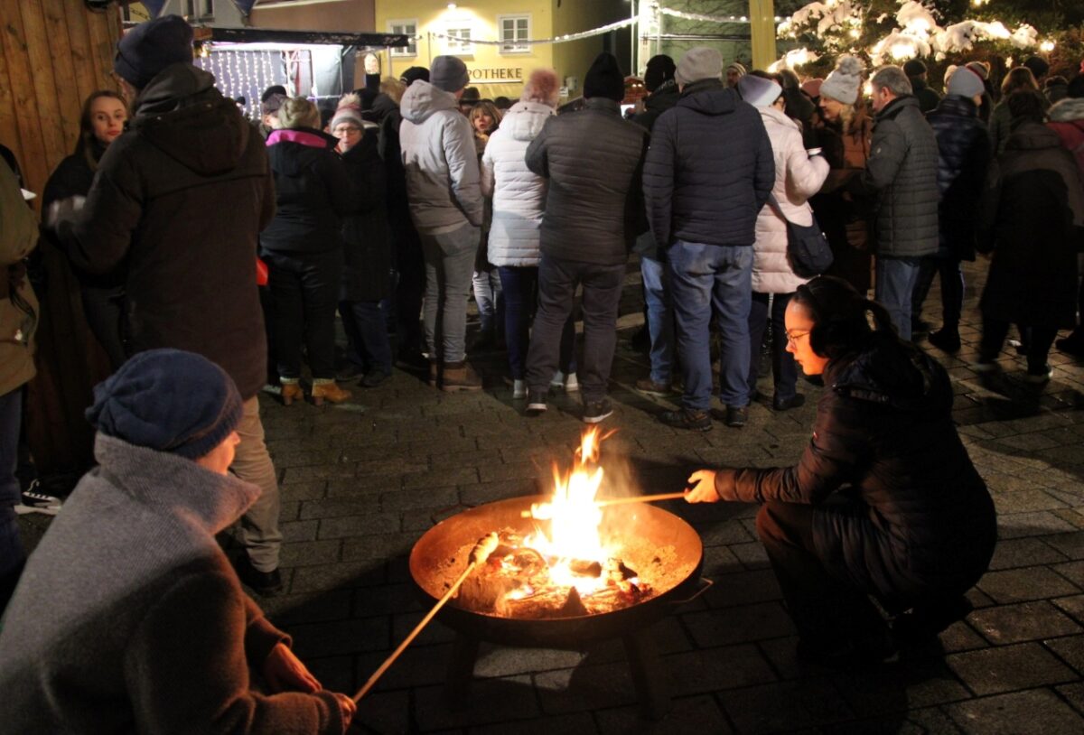 Bei frostigen Temperaturen wärmten sich die Besucher mit Glühwein und Punsch oder Gerichten vom Grill auf. Das Angebot an den hölzernen Weihnachtsmarktbuden reichte von der Advents-Deko bis zu selbst gebackenen Plätzchen.