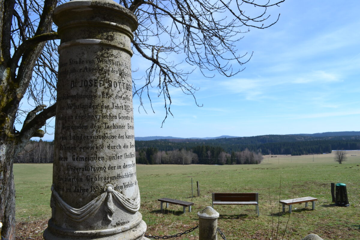 Und der pensionierte Rektor erläutert die Geschichte der 122 Jahre alten Böttgersäule, die aufwendig restauriert und 2017 wieder eingeweiht wurde. “Sie ist ein Mahnmal dafür ist, dass hier früher Menschen gelebt haben in einer Landschaft voller Erinnerungen, die heute so verlassen ist. Und sie steht in der Mitte der Goldenen Straße, am geografischen Mittelpunkt Europas und an der europäischen Wasserscheide.” Der Granitstein dieses Denkmals habe die Menschen jenseits und diesseits der Grenze geprägt.