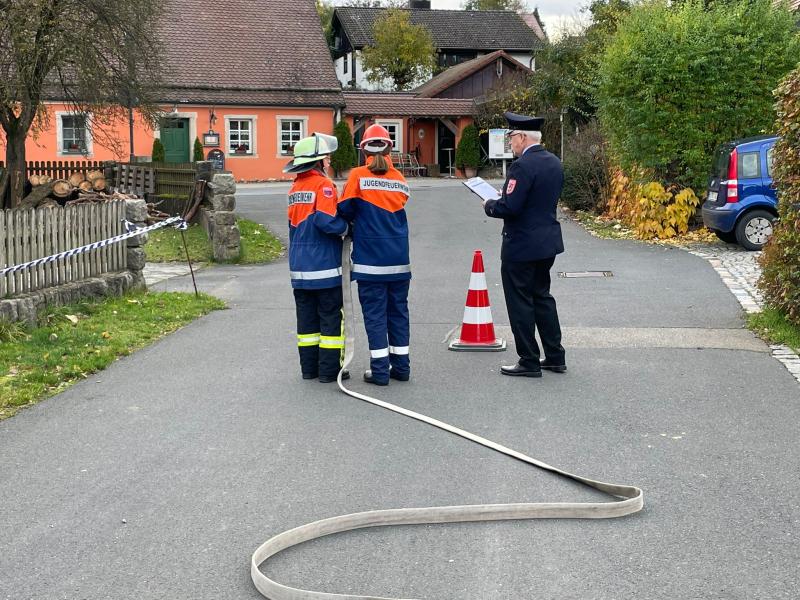 Neben einem theoretischen Test in Form eines Fragebogens mussten die Teilnehmer der höheren Stufen Gold / Urkunde noch Praxisteile absolvieren. Hier wurde das sichere Aussteigen aus dem Feuerwehrfahrzeug, das richtige Heben und Tragen, sowie ab Stufe Urkunde noch ein Strahlrohreinsatz als Angriffstrupp abgeprüft. Dank galt den anwesenden Kommandanten, Jugendwarten und Betreuern für die gute Ausbildung der Jugendlichen.